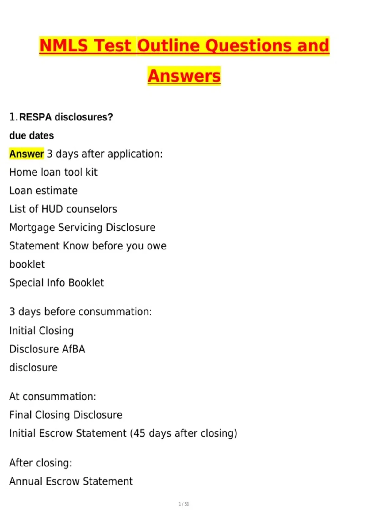 NMLS Test Outline 2026 Actual with Questions & Answers (Latest 2026 / 2027 Update) 100% Guarantee Pass (Verified Answers) NMLS MLO Exam Practice Test & SAFE National Exam Study Guide – Hard Questions with Answers | RESPA, Federal Laws & Regulations | INSTANT PDF DOWNLOAD (2026) NMLS MLO Practice Test is built for candidates preparing for the NMLS SAFE National Exam and MLO Licensing Test. It includes hard practice questions with answers aligned to the official NMLS Test Outline, covering RESPA, federal laws and regulations, ethics, loan origination activities, and compliance. Ideal for first-time test takers and repeat candidates seeking targeted exam readiness. Updated for the 2026 academic year and delivered as an INSTANT PDF DOWNLOAD