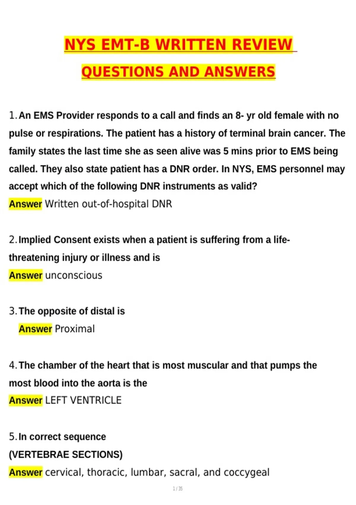 Answer Written out-of-hospital DNR