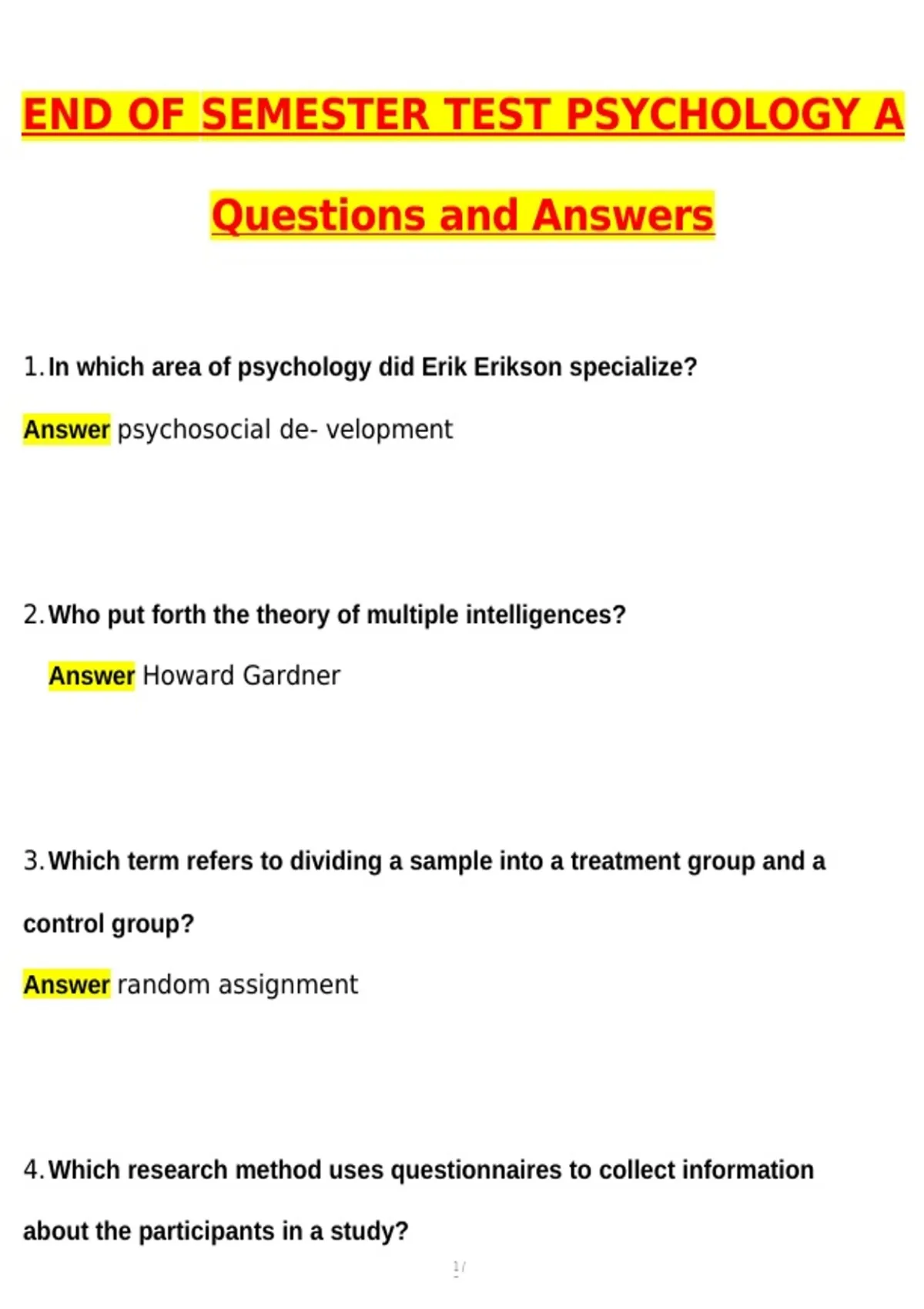 1.In which area of psychology did Erik Erikson specialize?