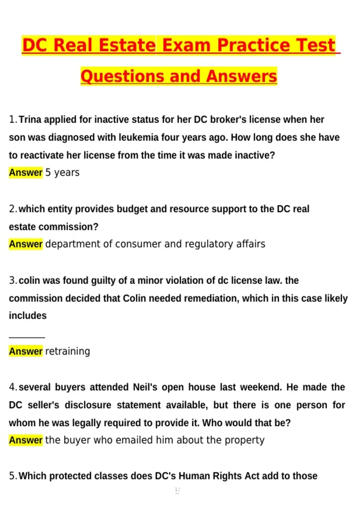 DC Real Estate Exam Practice Test Qs 2026 Actual Questions with Verified Answers | Latest 2026/2027 Update| 100% Correct A+ GRADE