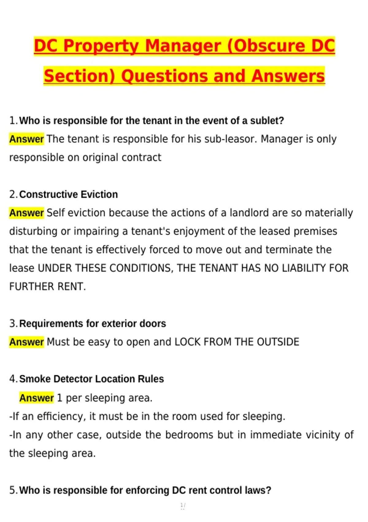DC Property Manager (Obscure DC Section) Exam 2026 Actual Questions with Verified Answers | Latest 2026/2027 Update| 100% Correct A+ GRADE