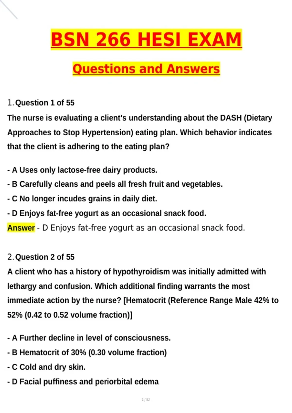 BSN 266 HESI Exam, 266 HESI Study 55 Qs, BSN HESI 266, Hesi 266 Multiple Choice Latest 2026 Actual Questions and Verified Answers (Latest 2026 / 2027 Update) A+ Grade 100% Guarantee Verified by Experts - Nightingale