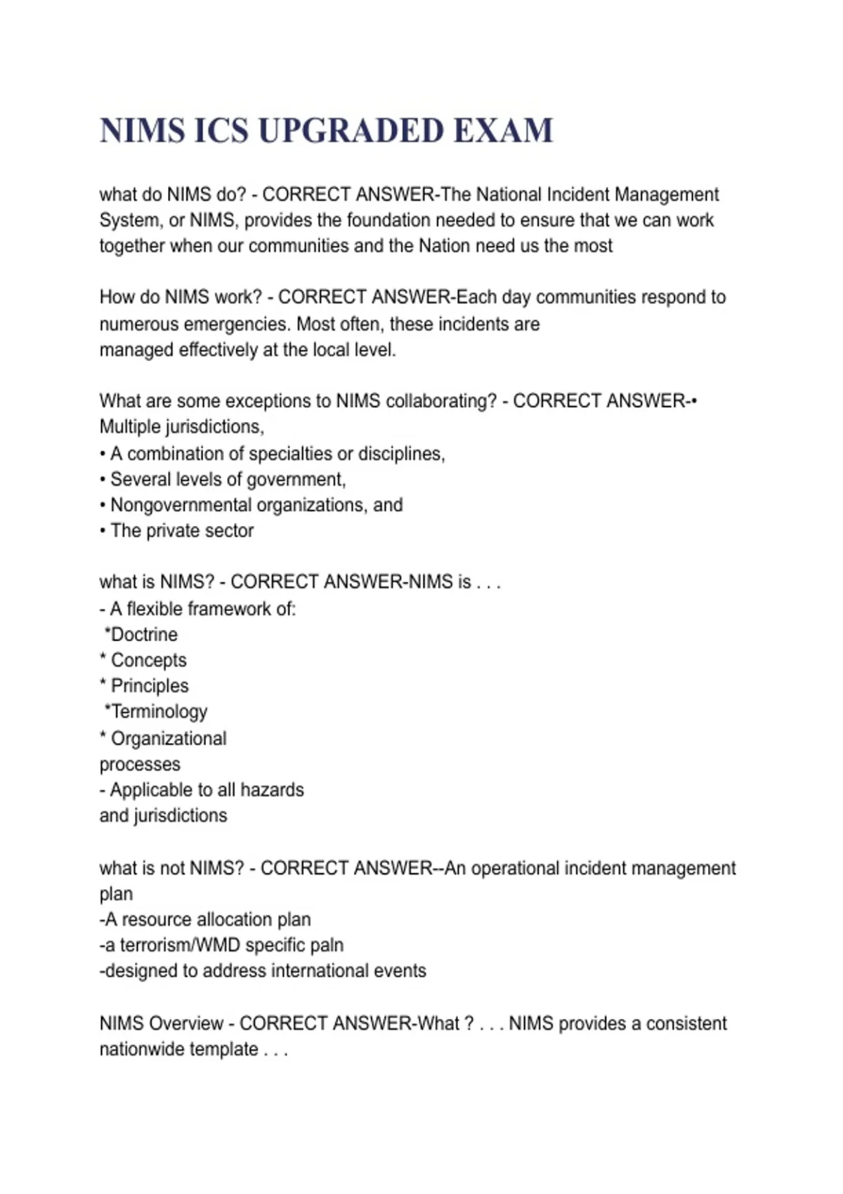 Prepare and excel in NIMS ICS Upgraded Exam 2025/2026 with Solution, providing complete questions and answers to master the Incident Command System and improve emergency management performance.