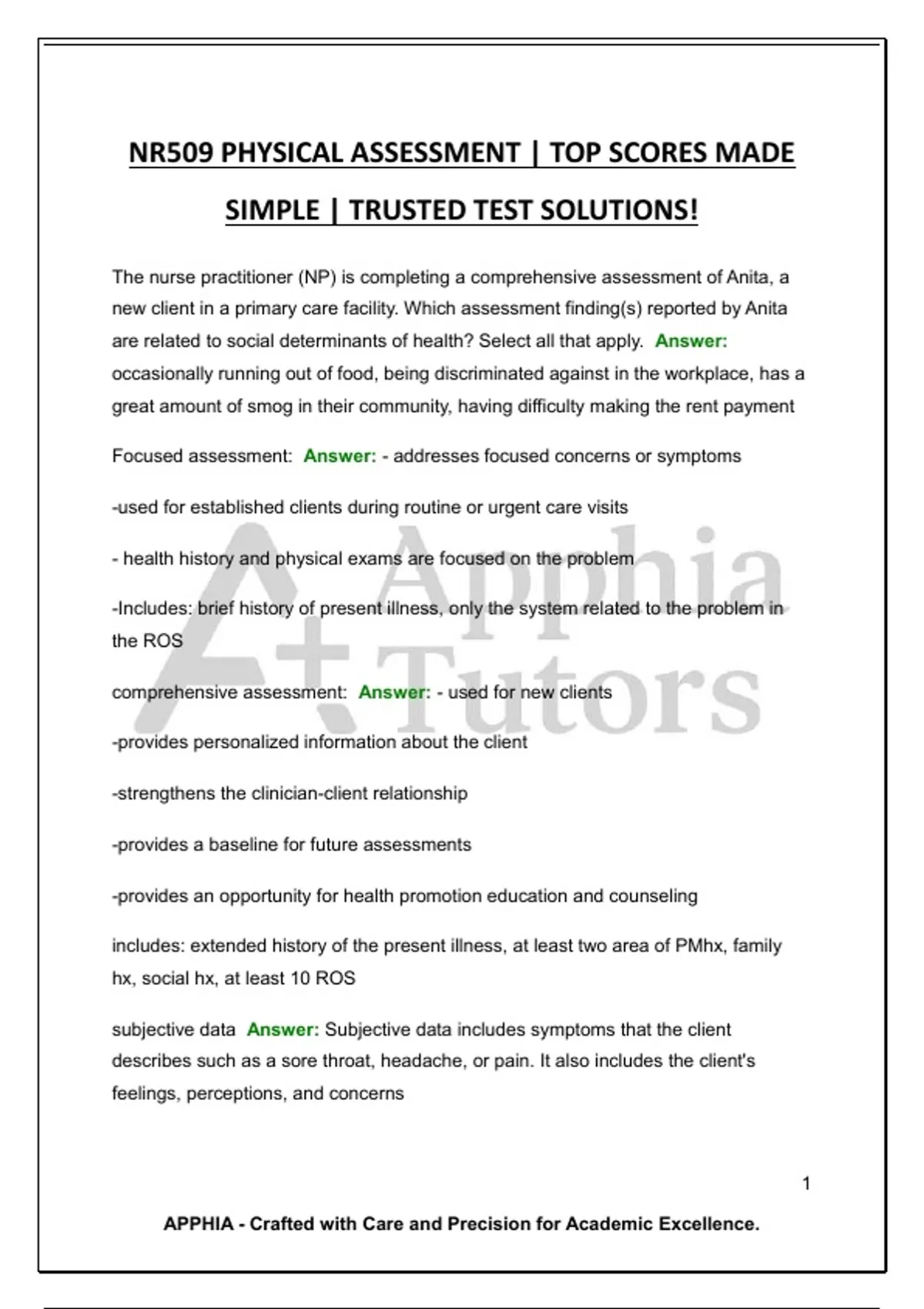 Focused assessment: Answer: - addresses focused concerns or symptoms