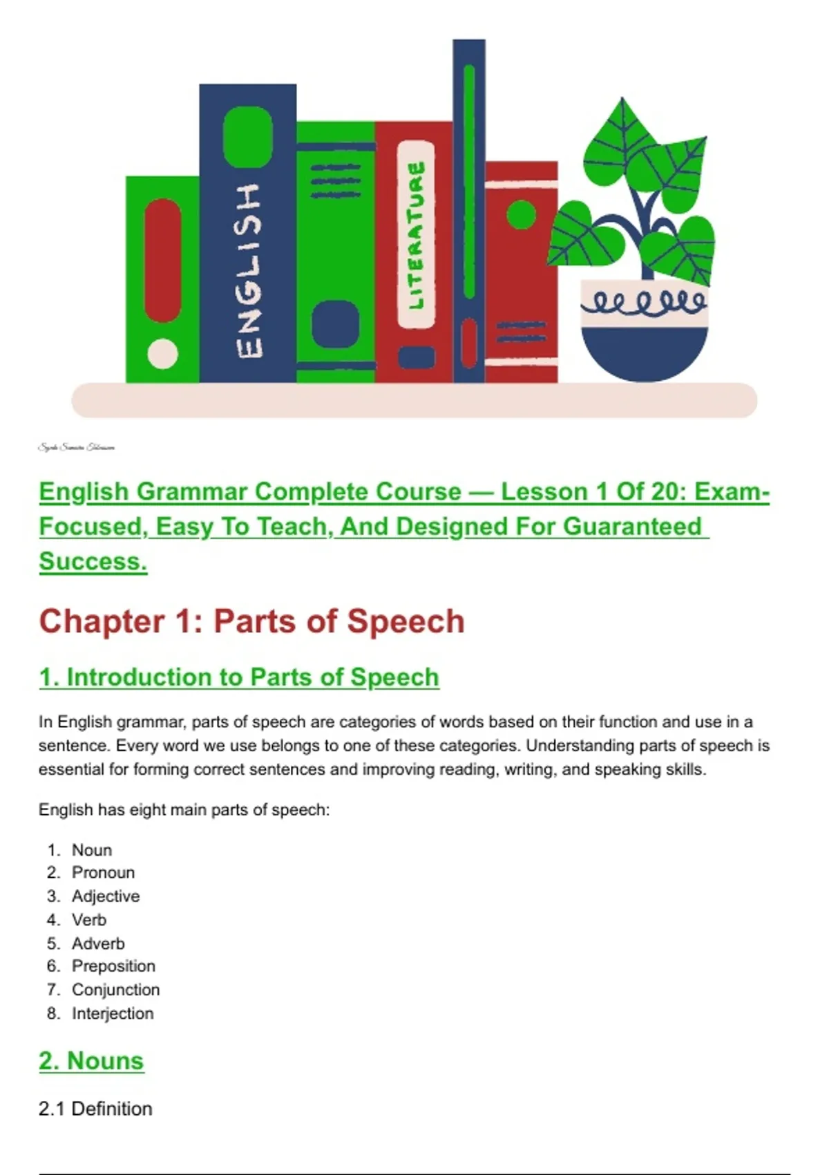 nglish Grammar Lesson 1: Parts of Speech Explained for Teaching & Exam Success