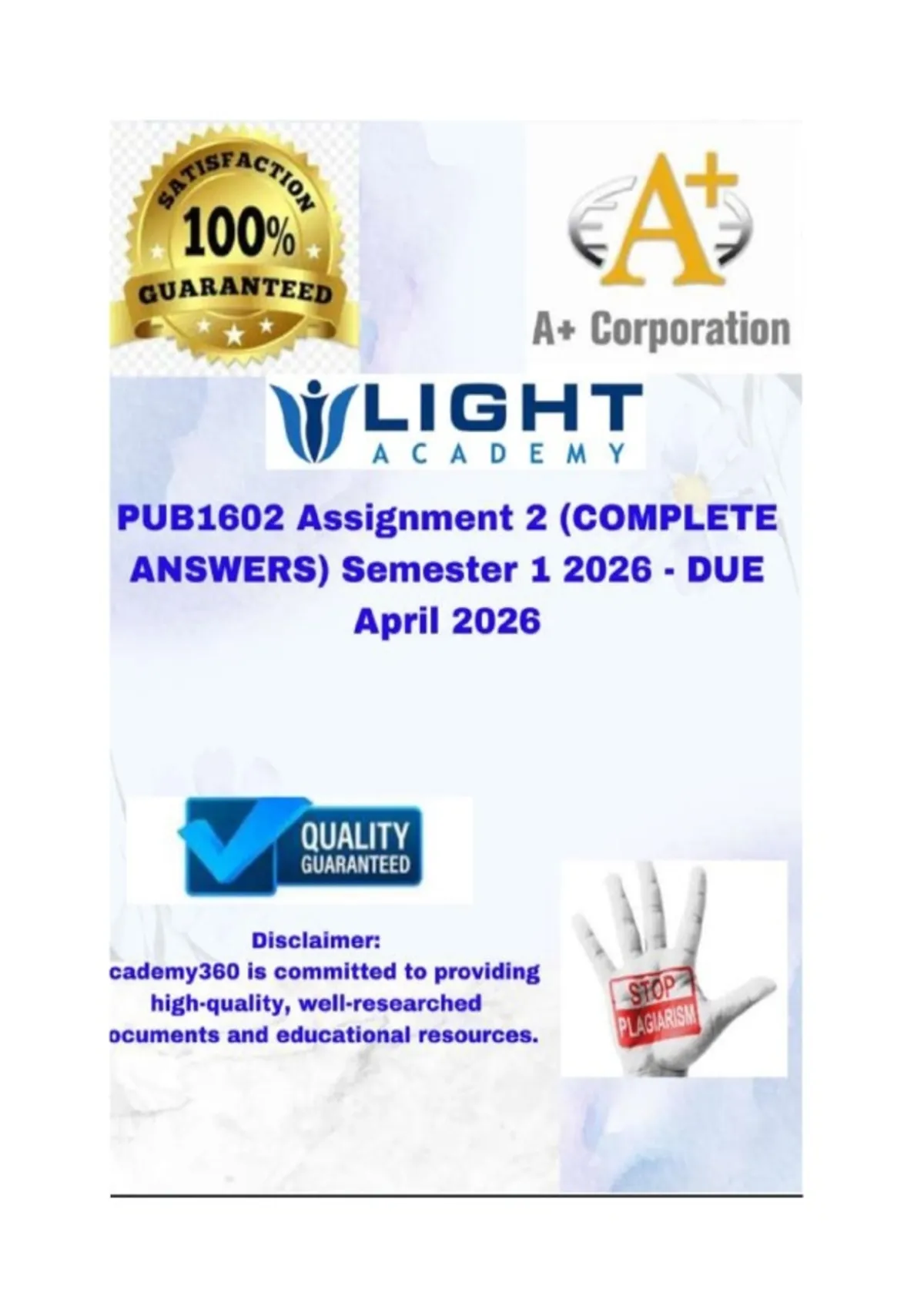 PUB1602 Assignment 2 (COMPLETE ANSWERS) Semester 1 2026 - DUE April 2026; ; 100% trusted ,comprehensive and complete reliable solution with clear explanation