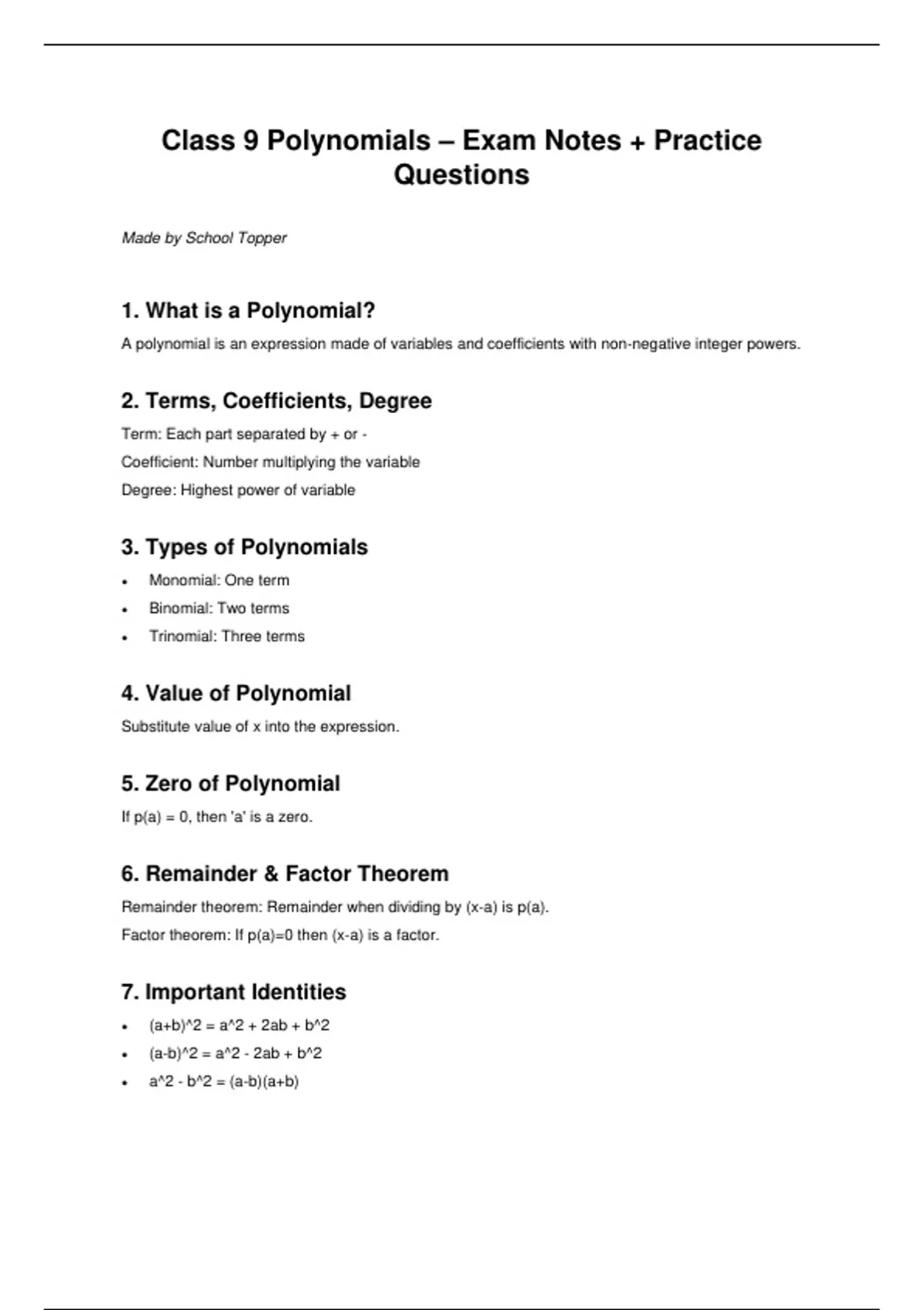 A polynomial is an expression made of variables and coefficients with non-negative integer powers.
