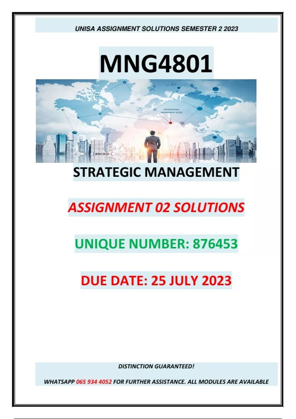 MNG4801 ASSIGNMENT 02 SOLUTIONS, SEMESTER 2, 2023
