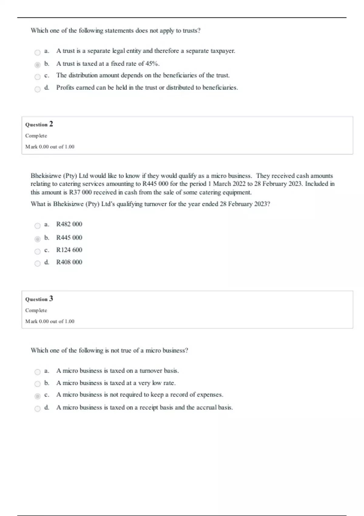 Question 5 Bhekisizwe (Pty) Ltd is registered as a micro business and has compiled the following financial information for the