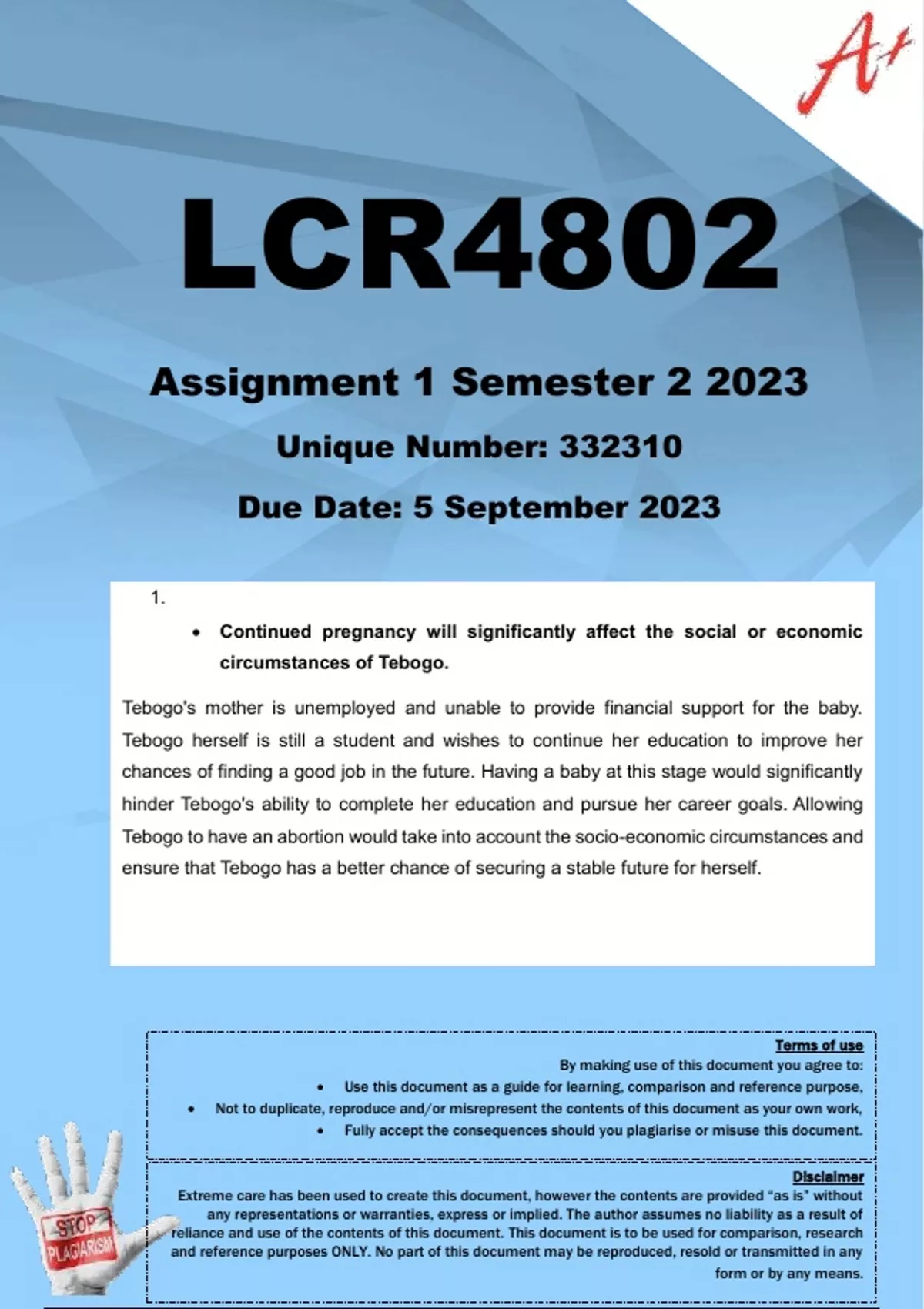 LCR4802 Latest exam pack questions and answers and summarized notes for exam preparation. Updated for October November 2023 exams . For assistance Whats-App.0.6.7..1.7.1..1.7.3.9 . All the best on your exams!!