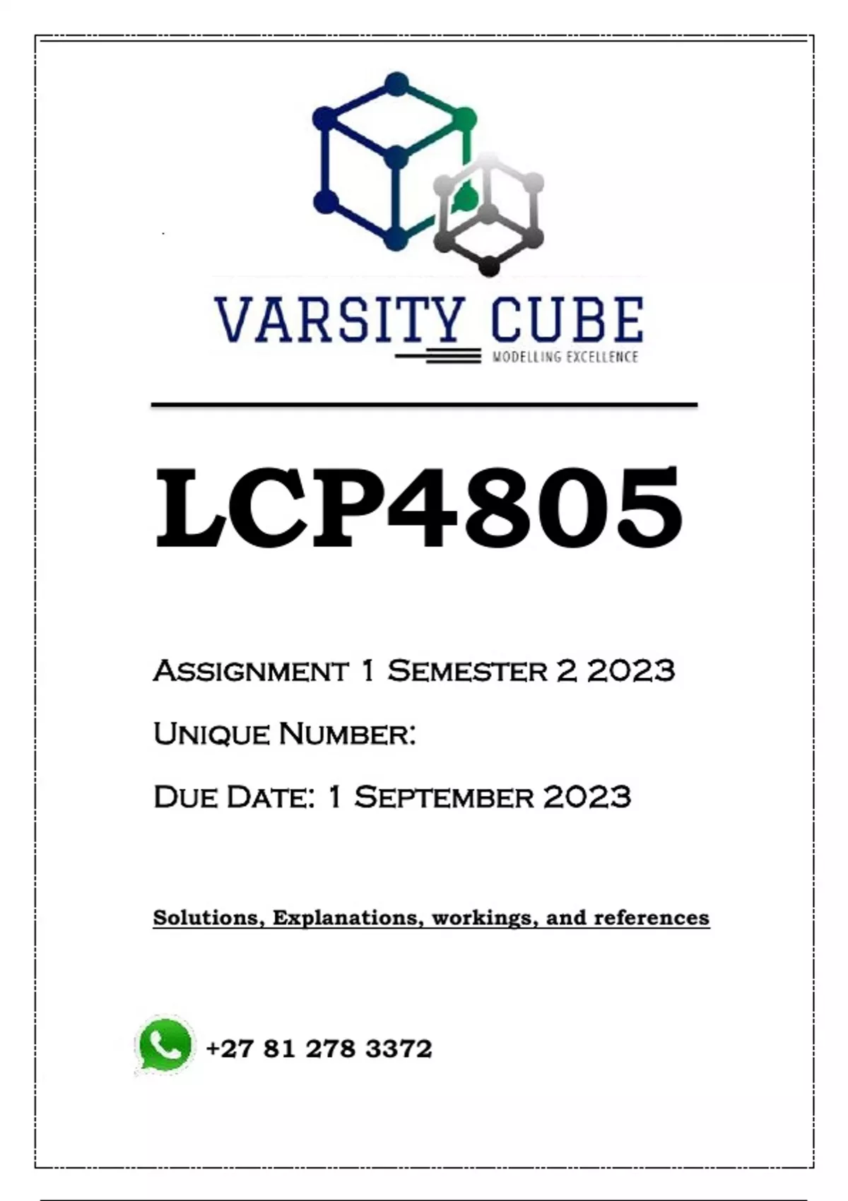 IOP3705 Assignment 4 (ANSWERS) Semester 2 2023 - DISTINCTION GUARANTEED Answers, guidelines, workings and references ....................................... Stay-a-While Rentals started as a small business that administered holiday accommodation on behalf of its owners. The administration also entails cleaning and maintenance of the properties. The company is administrating the rental of 40 houses and a couple of townhouses. Joe, the founder and director of the company, also considers the administration of a building of flats. Joe head-hunted John, who oversaw a garden services business in several suburbs. John brought 20 employees, a few pick-up trucks and garden tools. Unfortunately, the pick-ups were, as a result of financial constraints, not serviced. Some garden tools also needed to be replaced. The management team consists of Joe, Patrick, a business partner and director; the HR manager Joan; Stephany, the financial manager; and John, the maintenance manager. John is also responsible for the gardens. Currently, the position of IT manager is vacant. Josephine, Joe’s wife, is assisting with capturing the data on the IT system. COMPULSORY ESSAY ASSESSMENT 4 [2023] BASED ON LESSONS 5 TO 8 Assessment 4: Instructions You are expected to meet specific requirements relating to the layout and technical presentation of assignments: • Cover page: The first page of your document should display information such as the module code, assignment number, and your name and student number. • Table of contents: Always include a table of contents on the second page, listing the headings and subheadings of your assignment. The headings and subheadings should describe the content of the sections. These headings and subheadings should be numbered, and the page numbers should be provided (see the table of contents on page 2 of this tutorial letter as an example). • Introduction: There should be only one introduction to the assignment, not one per question. • Discussion: This is also called the body of the assignment. This is where you answer the questions asked. Use the decimal classification system up to four decimals, alphabetical classification for the fifth level and small Roman numerals for the sixth level, for example, 1, 1.2, 1.2.1, 1.2.1.2 and (a)(iii). • Conclusion: There should be a conclusion at the end of your assignment. This section briefly summarises the most important aspects addressed in the assignment. There should be only one conclusion and not one per question. • Reference list: Provide full details in a list of references at the end of your assignment. Use the APA referencing method. As an organisation development consultant, James received a phone call from Patrick requesting him to quote for a team-building intervention for their management team. Patrick told him confidentially that there were many conflicts among team members. The conflict negatively impacts the performance and profitability of the company. He suspects it is due to Josephine’s “bossiness” and how she deals with the customers. He told James that their clients complain about the slow service and that their invoices are often incorrect. Some angry clients even threaten to use other service providers if the quality of their service does not improve. Due to the urgency of the request, James was contracted and embarked on a team-building session to deal with the underlying conflict. During the session, the conflict exploded, and members accused each other of a lack of cooperation. Josephine complained that the IT system could not handle the load, especially since John joined the company. She then withdrew and left the session, saying she never gets listened to. John complained that he did not get the support as expected, his trucks need service, and he finds it challenging to keep up with all the requests for adding new clients to his garden service. He also mentioned that his employees complain as they used to do things differently before they joined Stay-a-While. They don’t get overtime pay, and they don’t experience a sense of belonging. Stephany told Joe they failed to budget for truck services and new lawnmowers. After calming John, Joe said that his vision for the company is not to increase the garden services. As the garden services are too expensive, they should instead focus on expanding the administration of the houses and only do garden services to attract new clients for rental purposes. He further mentioned that there are more opportunities to make money with rentals, primarily if they can administer holiday flats, as flats have few gardens. Joe also said he did not have time to discuss his vision for the company yet, but he believes that John’s clients could also be a target for renting their properties. He then told John to tell his gardeners they must decide whether they want to work for this company. After the session, James was paid but has yet to receive feedback from Patrick on the success of the intervention. James believed that the time was too short but that they at least solved some of the conflicts by having the opportunity to speak their minds. However, he later read in the local newspaper that John had started a new maintenance company. QUESTION 1 Provide a brief overview of the four major techniques for gathering diagnostic data. In your discussion, propose and motivate the most suitable data collection method James should have used to collect data at Stay-a-While Rentals. (10) QUESTION 2 Briefly distinguish between the different types of interventions and discuss whether a team-building intervention was the most appropriate intervention for addressing the problems at Stay-a-While Rentals. Substantiate your answer with relevant examples from the case study. (10) QUESTION 3 The diversity of practical advice for managing change can be organised into five (5) major activities or elements. Identify and discuss the five key elements or steps you would propose to Stay-a-While