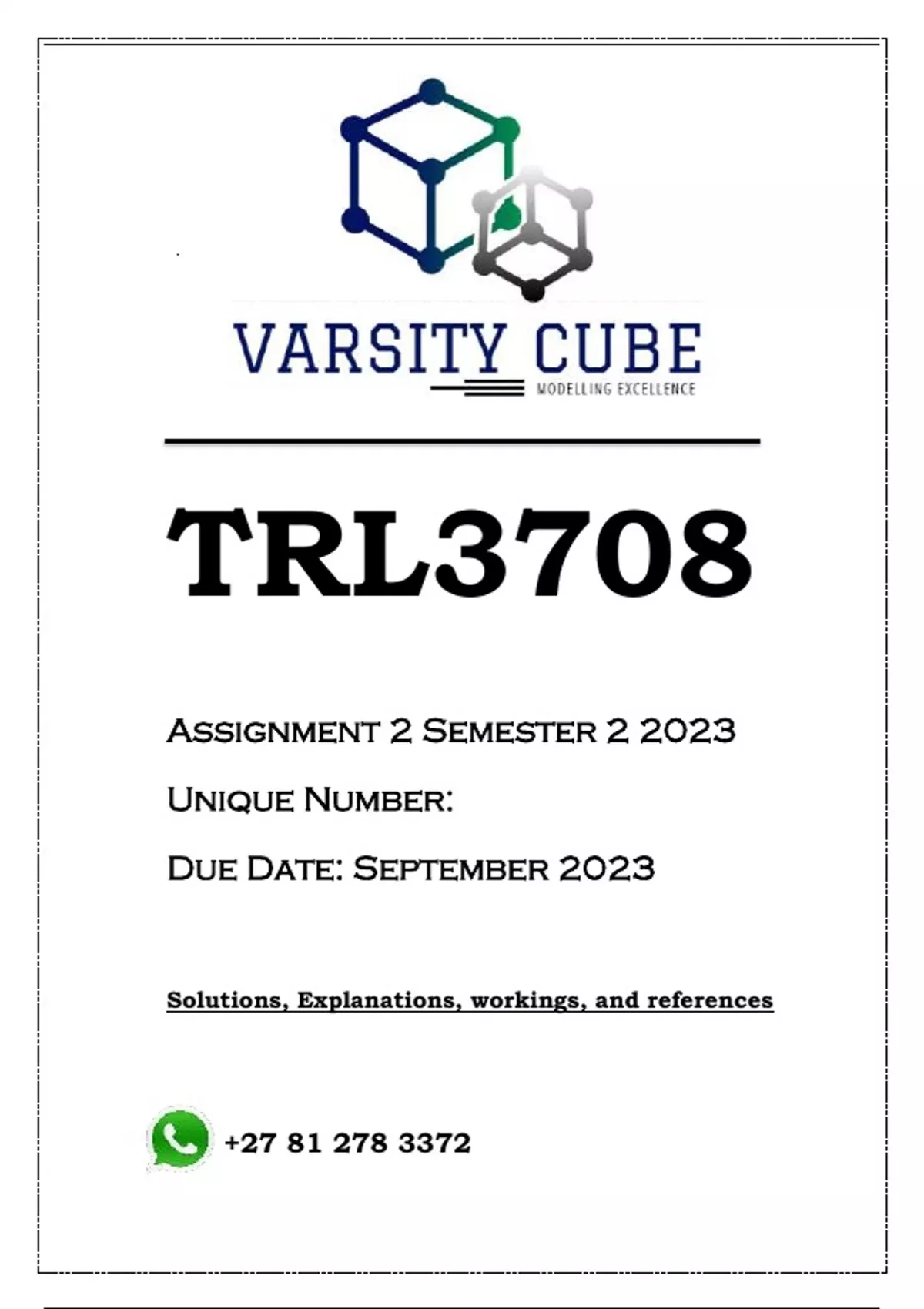 TRL3708 Assignment 2 Semester 2 2023 Answers, guidelines, workings and references