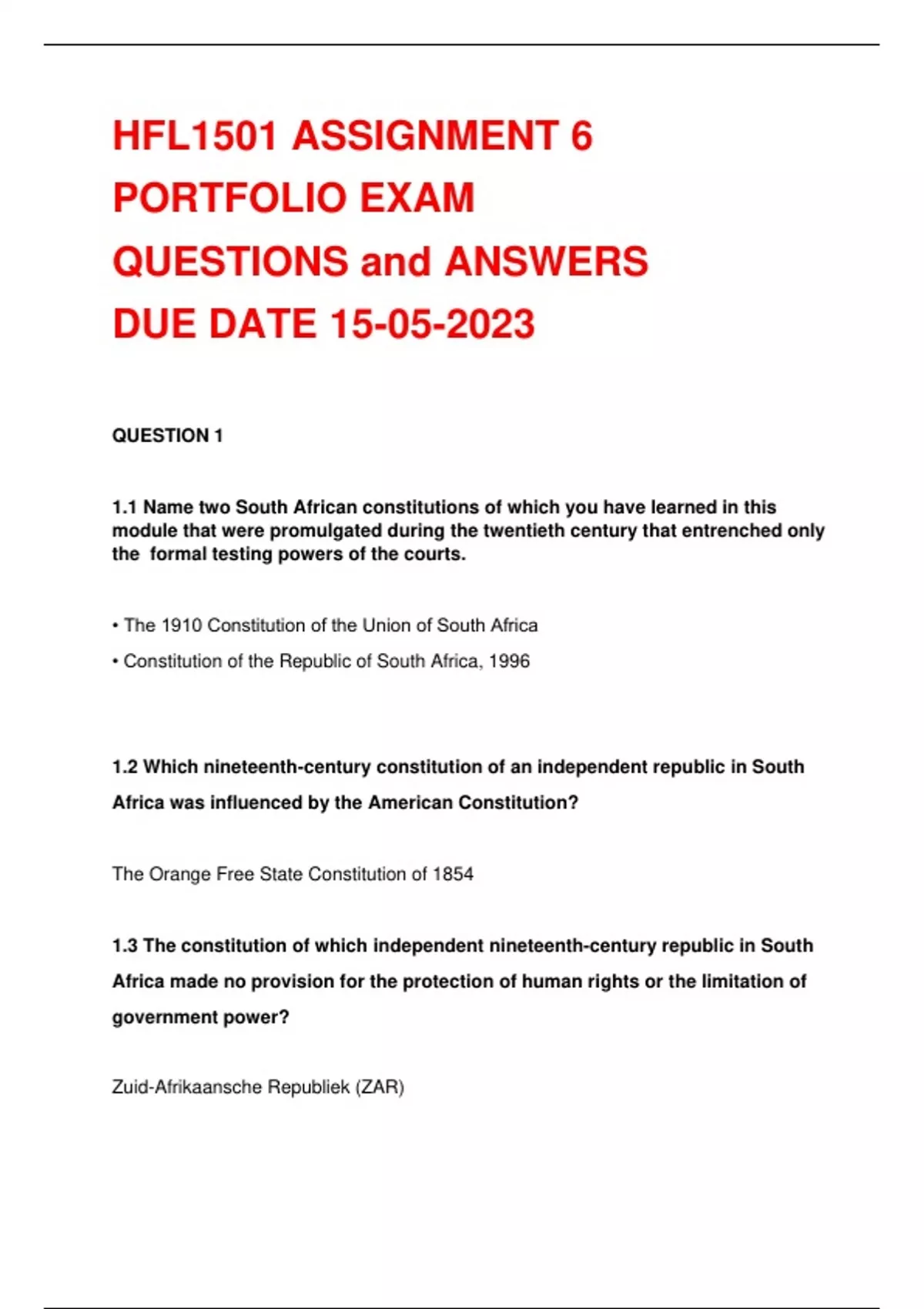 1.1 Name two South African constitutions of which you have learned in this