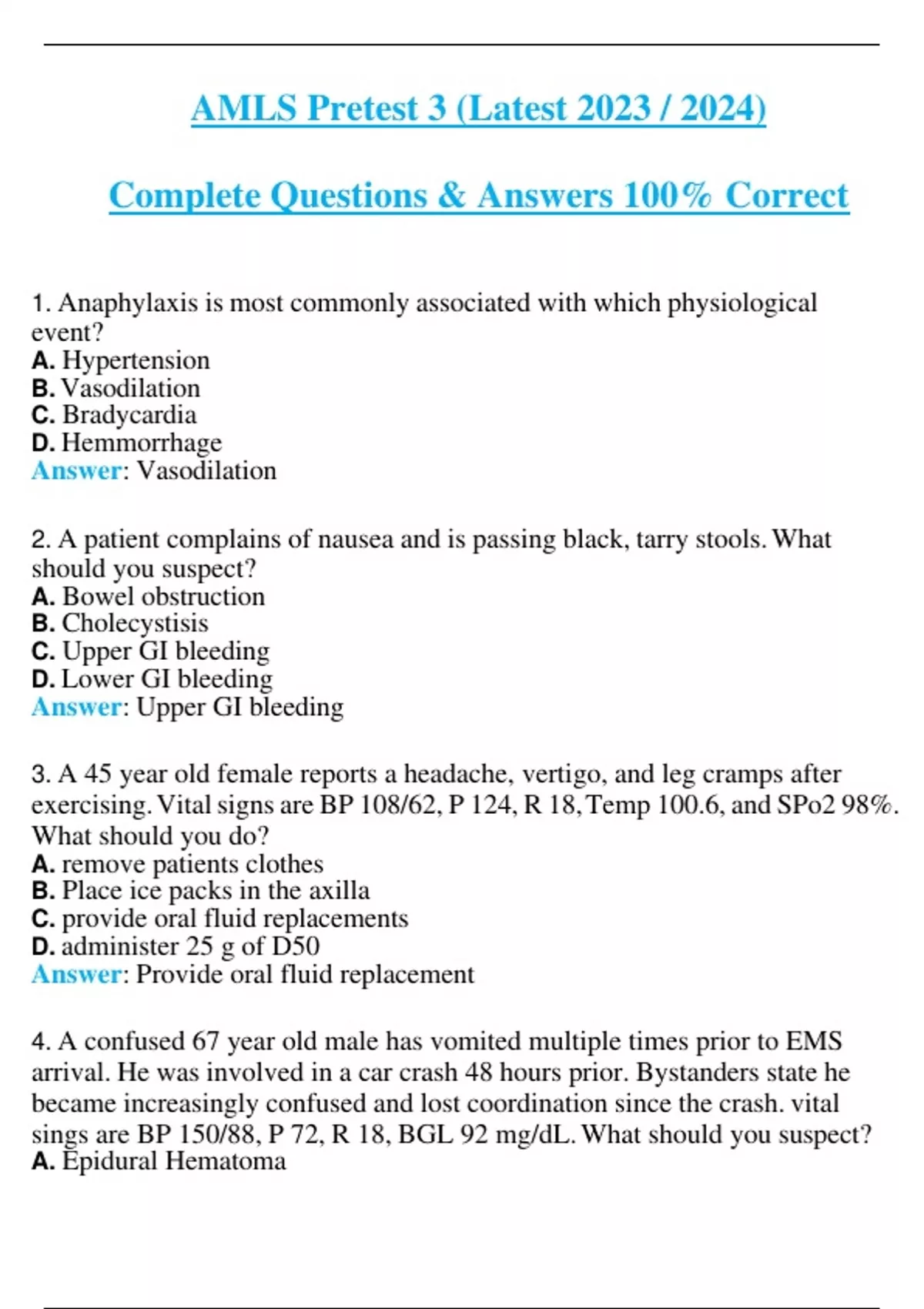 AMLS Pretest 3 (Latest 2023 / 2024) Complete Questions & Answers 100% Correct