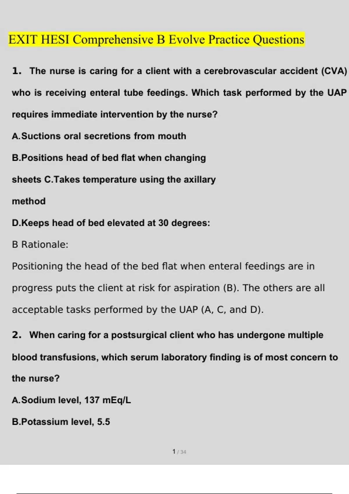 EXIT HESI Comprehensive B Evolve Practice Questions