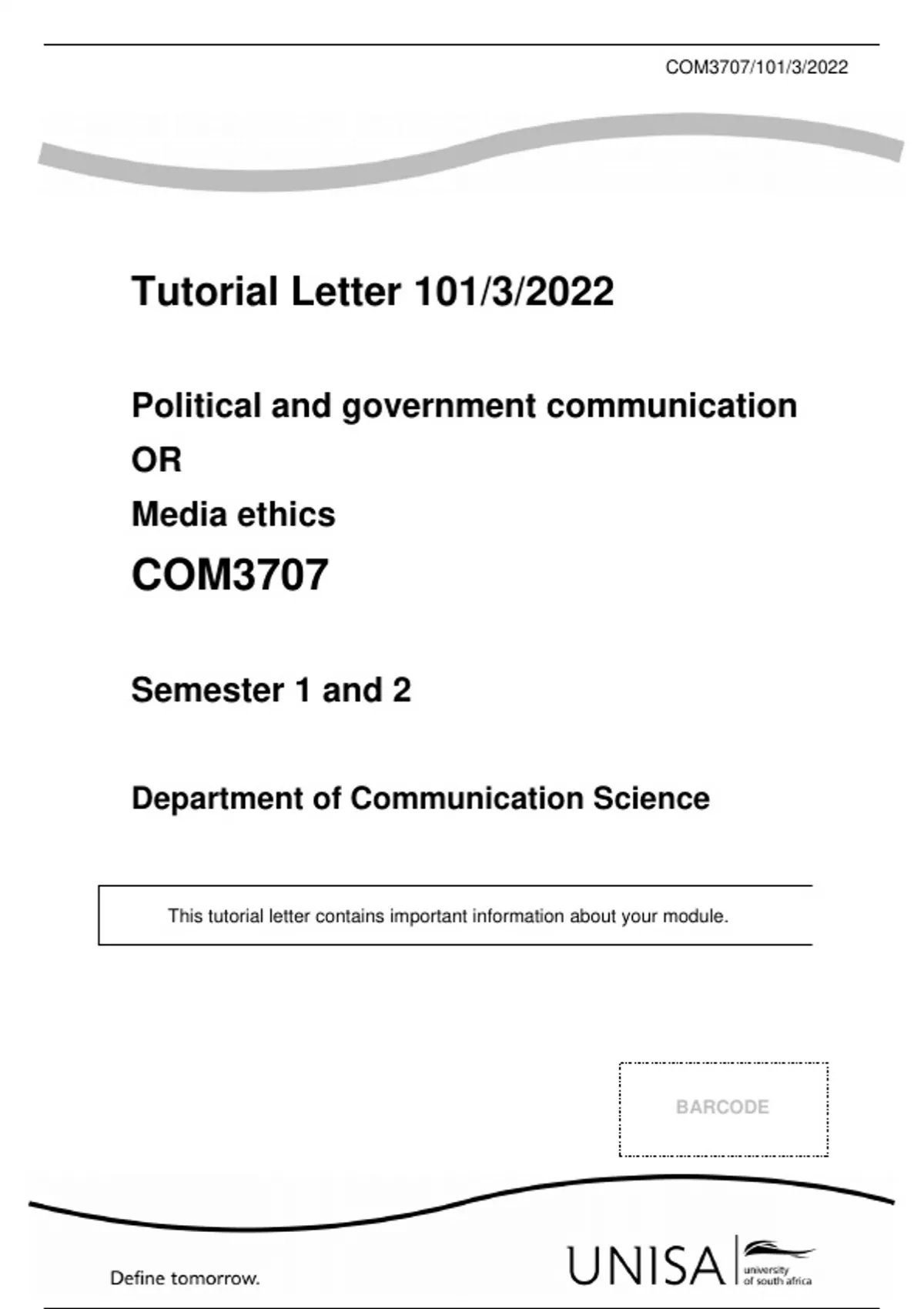, COM3707/101/3/2022