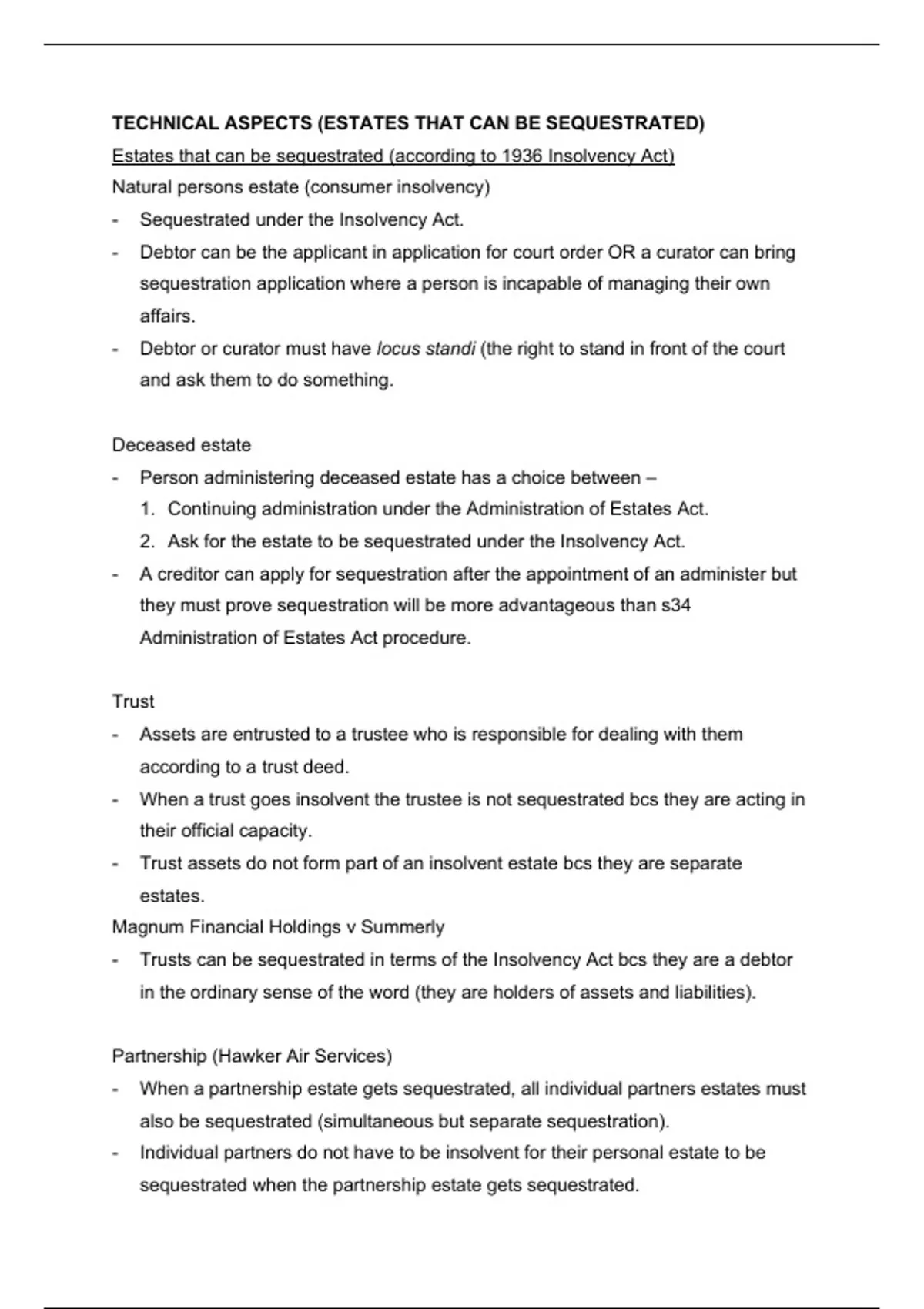 - S13(1) of Insolvency Act = sequestration of partnership results in simultaneous