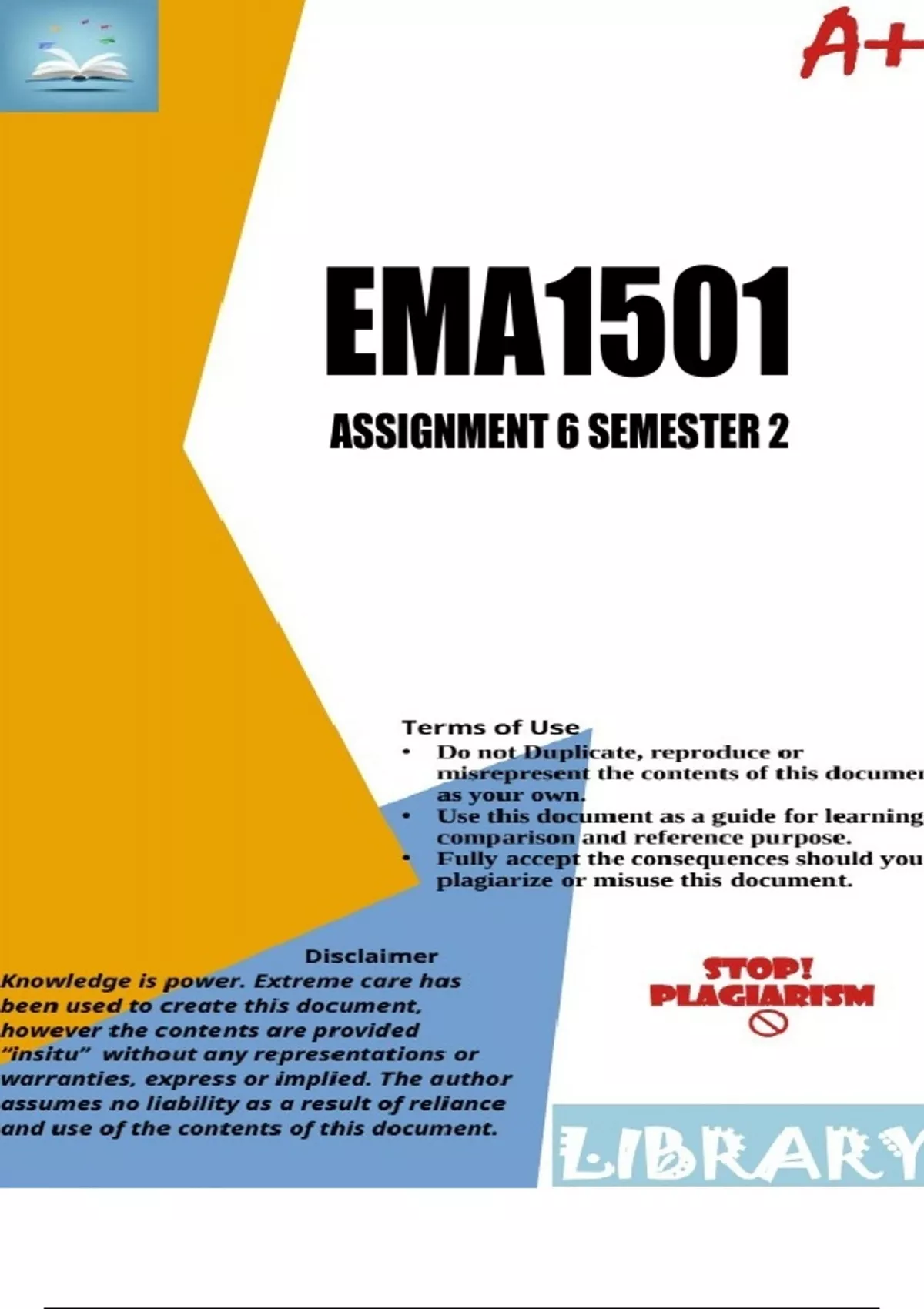 EMA1501 Assignment 6 Semester % TRUSTED workings, explanations and solutions. For assistance call or us on .