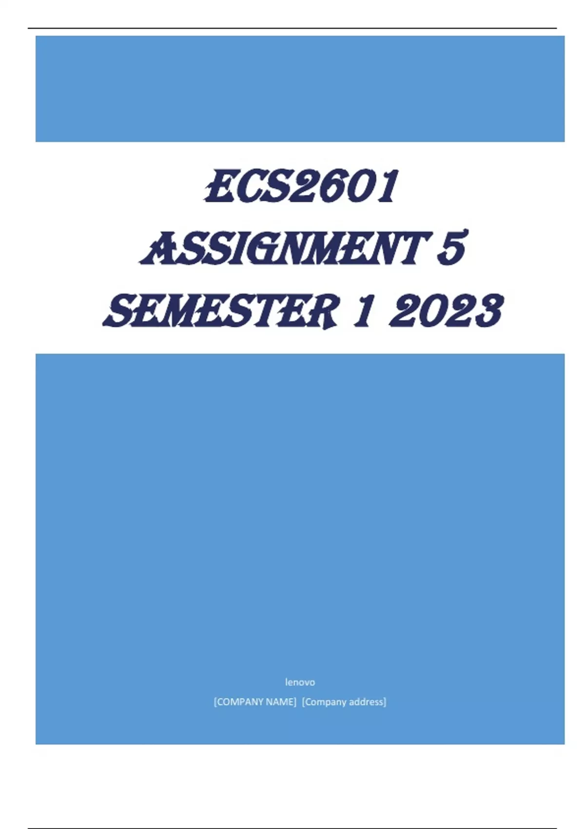 , ECS2601 Assignment 5 Semester 1 2023 (313595)