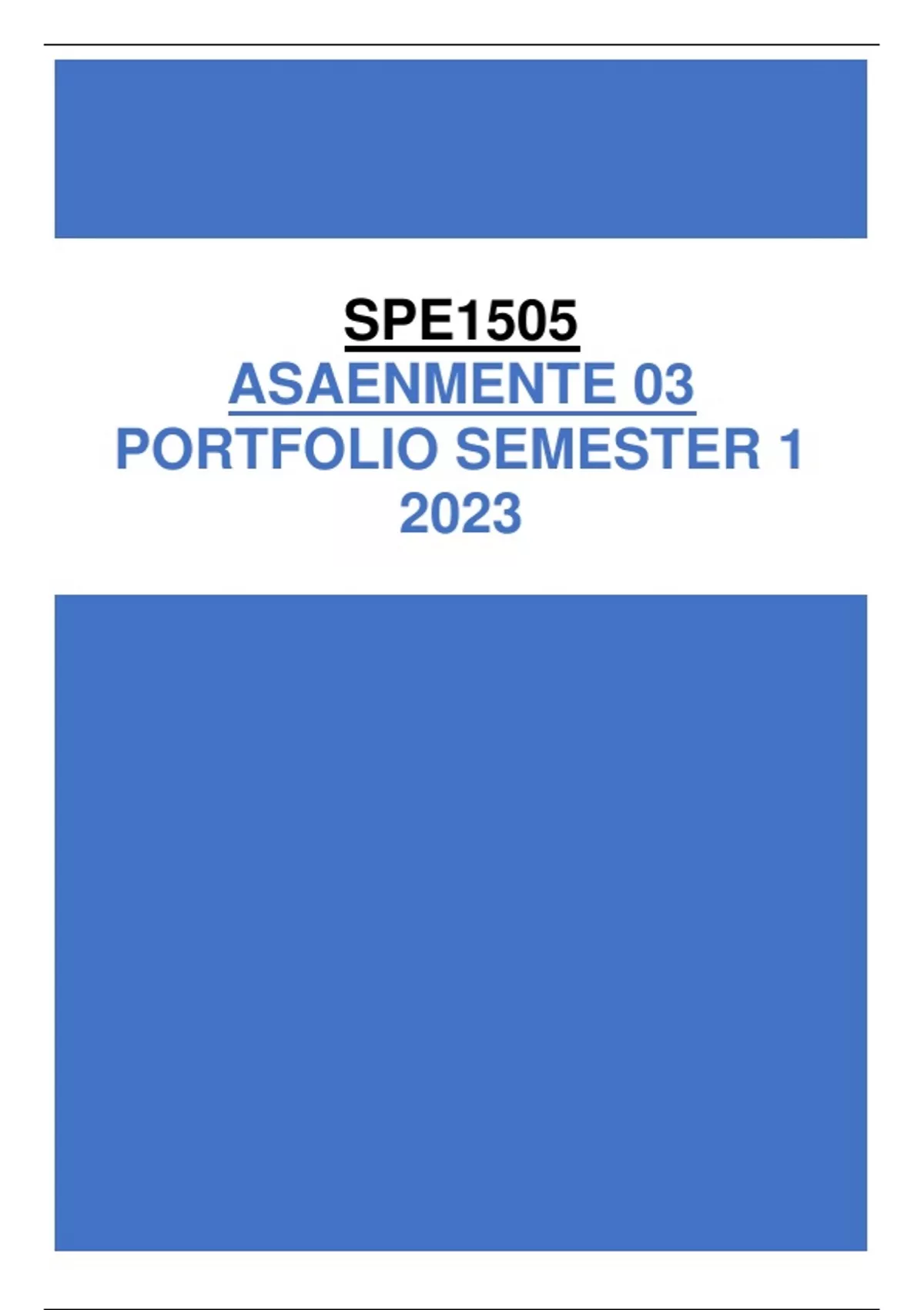 SPE1505 ASSIGNMENT 3 (PORTFOLIO) SEMESTER 1 2023