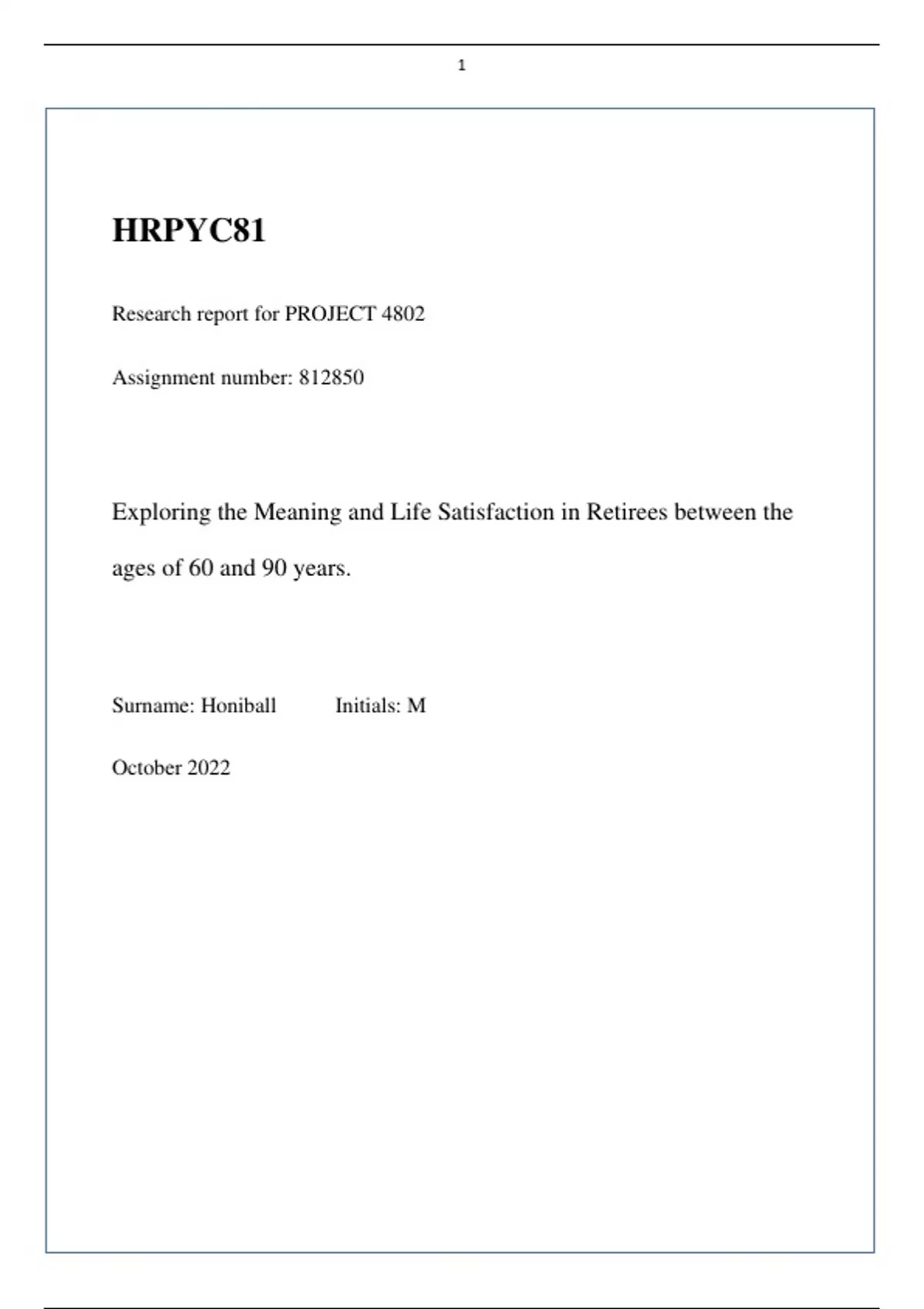 Exploring the Meaning and Life Satisfaction in Retirees between the ages of 60 and 90 years.
