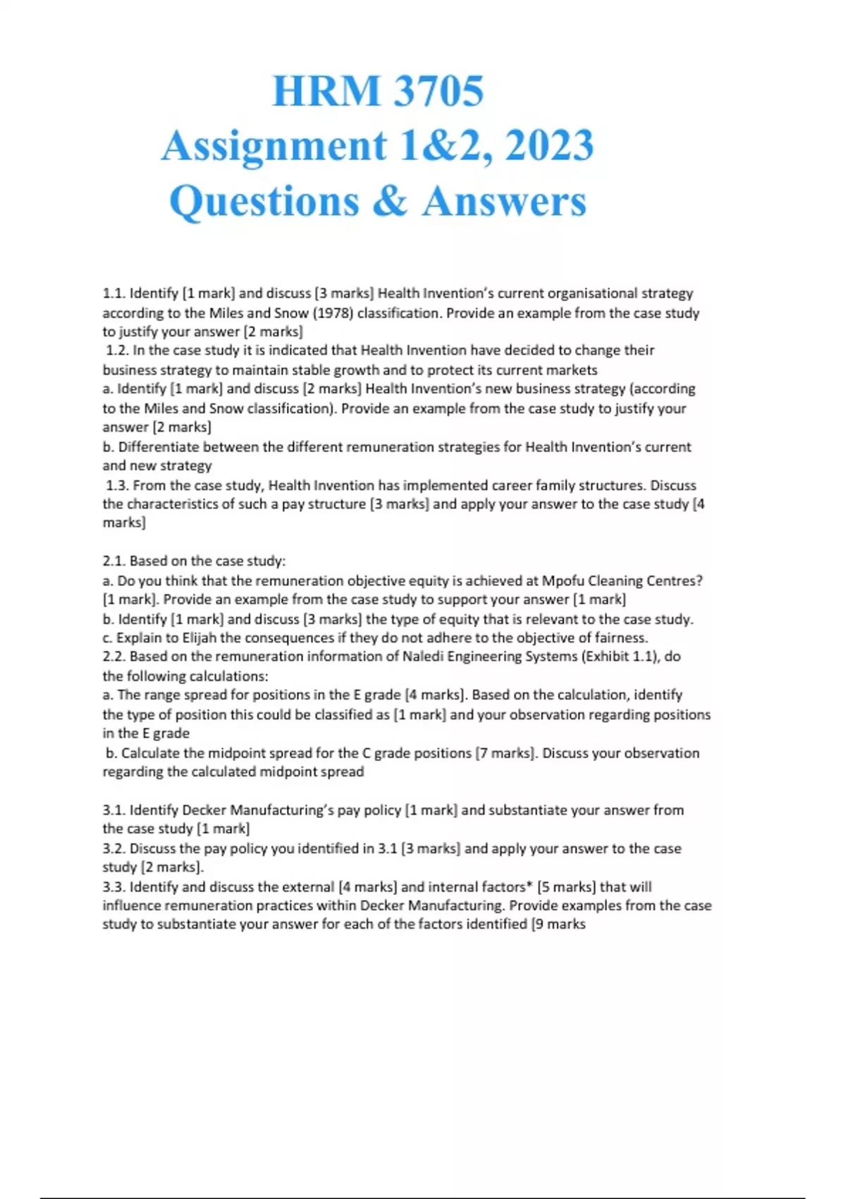 HRM 3705 Assignment 1&2, 2023 Questions & Answers