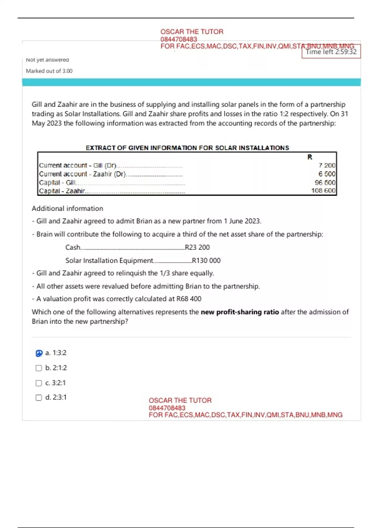 trading as Solar Installations. Gill and Zaahir share profits and losses in the ratio 1:2 respectively. On 31