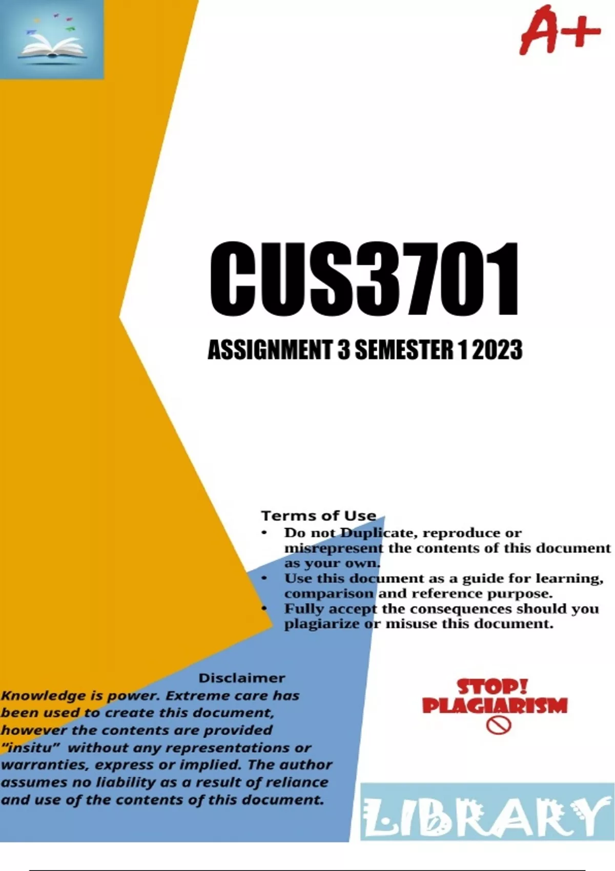 CUS3701 Assignment 3 Full Solutions 2024 (629218) - DUE 6 August 2024