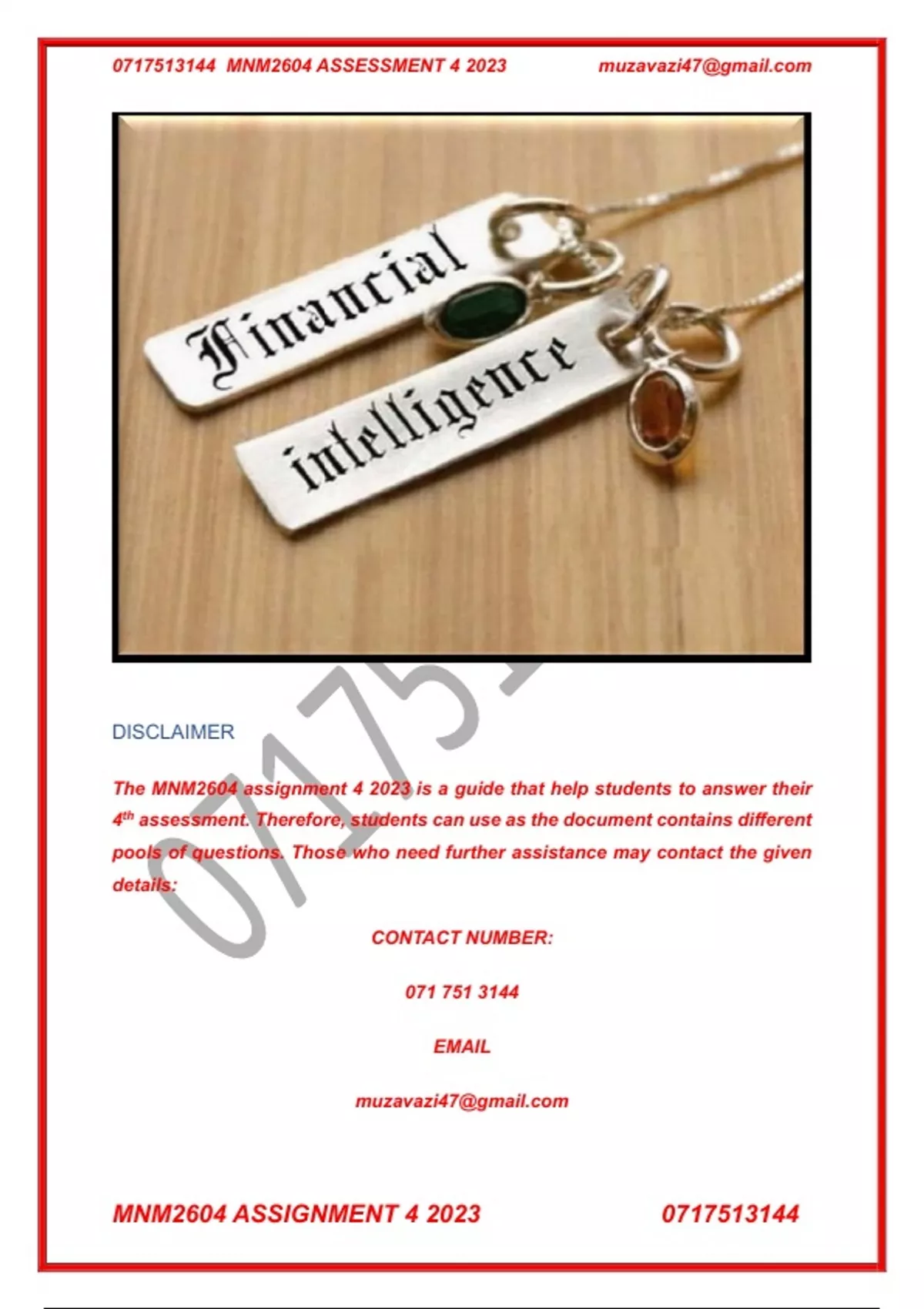 , 0717513144 MNM2604 ASSESSMENT 4 2023