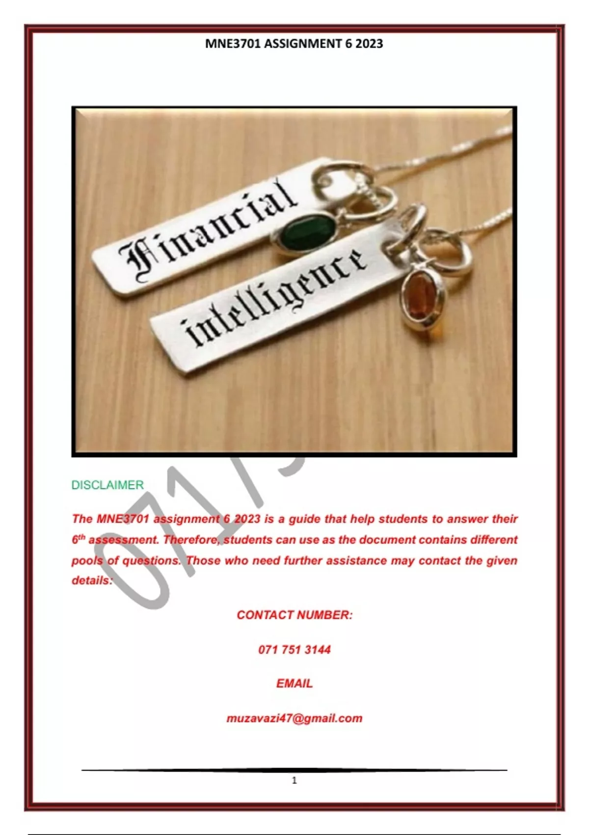 The MNE3701 assignment 6 2023 is a guide that help students to answer their