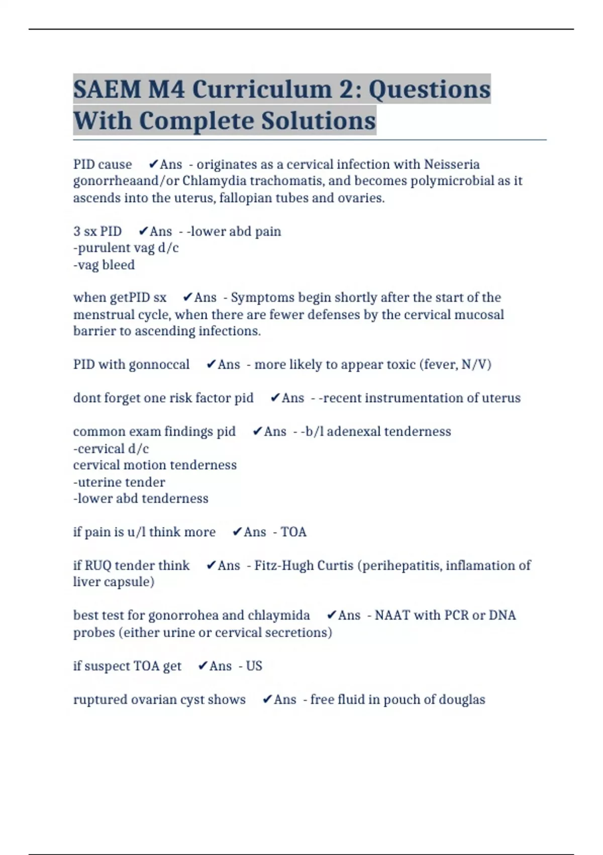 common exam findings pid ✔️Ans - -b/l adenexal tenderness