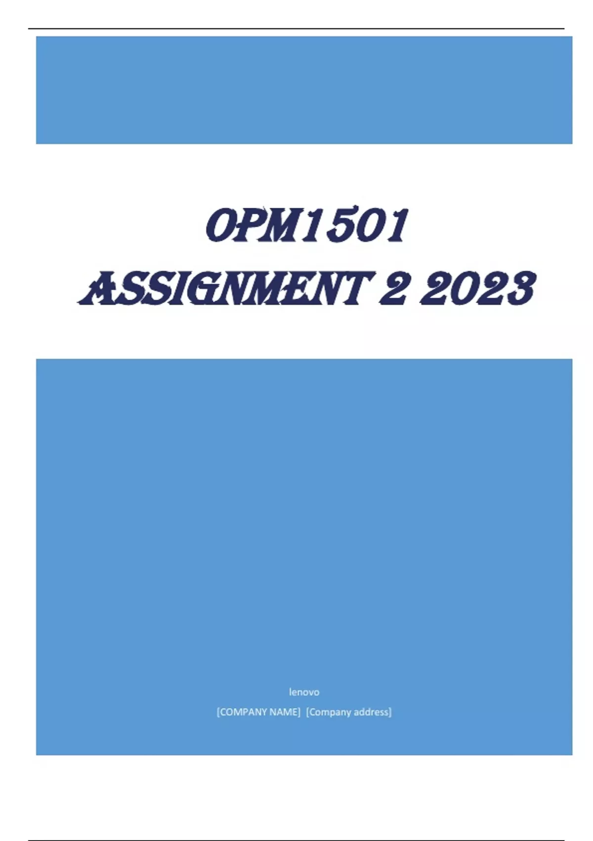 , OPM1501 Assignment 2 (COMPLETE ANSWERS) 2023