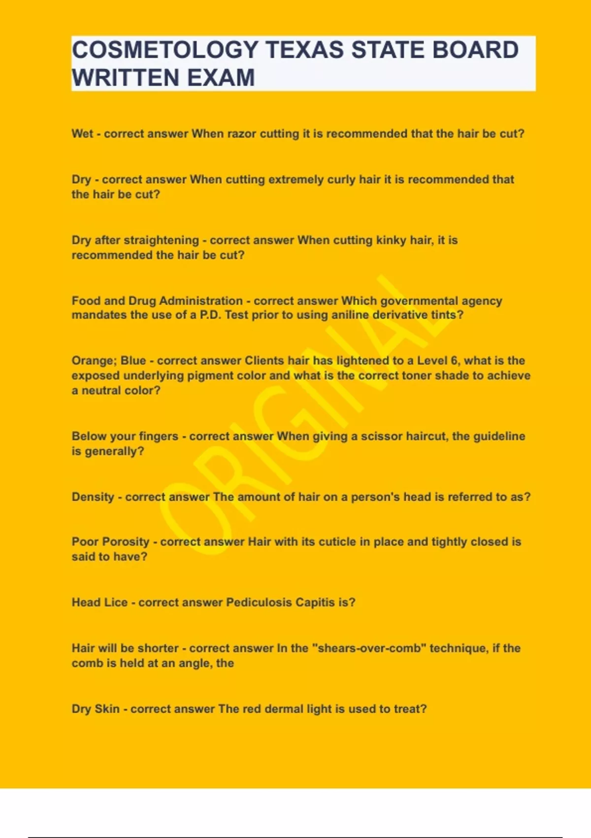 Cosmetology Texas State Board Written Exam|2023 LATEST UPDATE|GUARANTEED SUCCESS