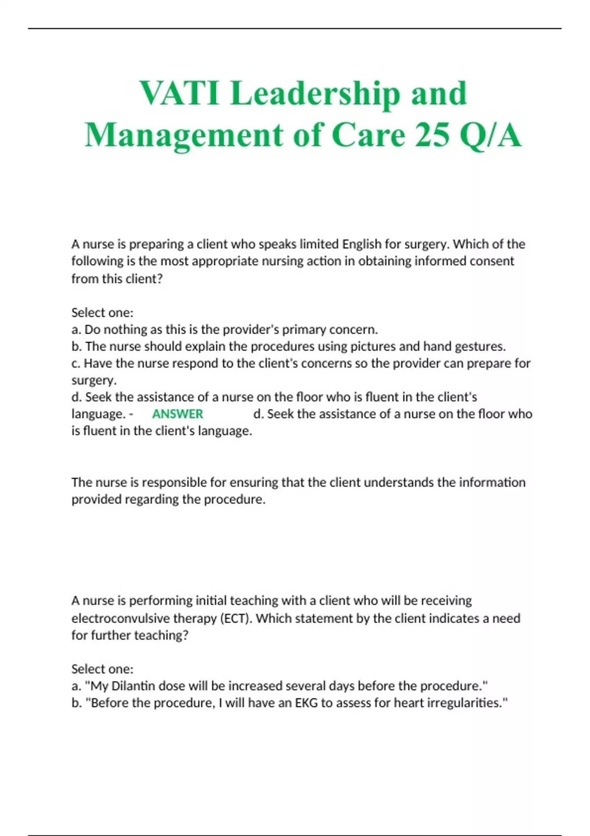 VATI Leadership and Management of Care 25 Q/A 2023/2024