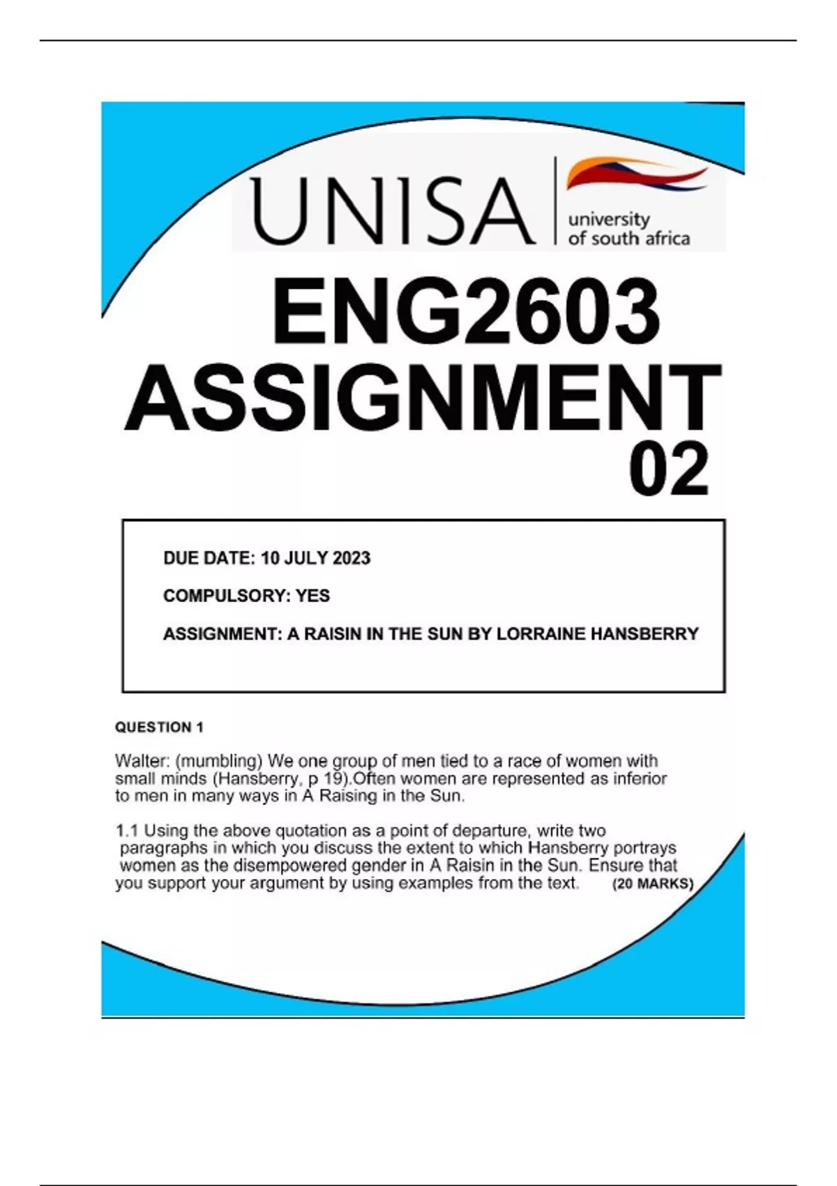ENG2603 ASSIGNMENT 02 2023 ...GUIDELINES, SOLUTIONS, EXPLANATIONS... DUE DATE 10 JULY 2023