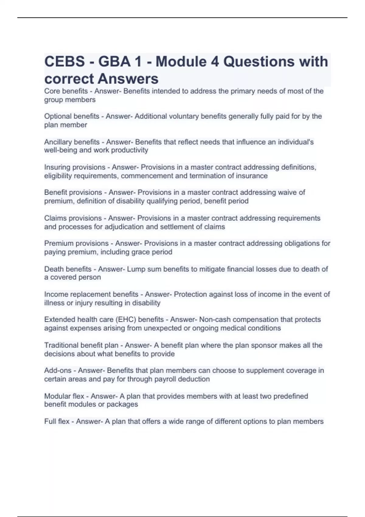 CEBS - GBA 1 - Module 4 Questions with correct Answers