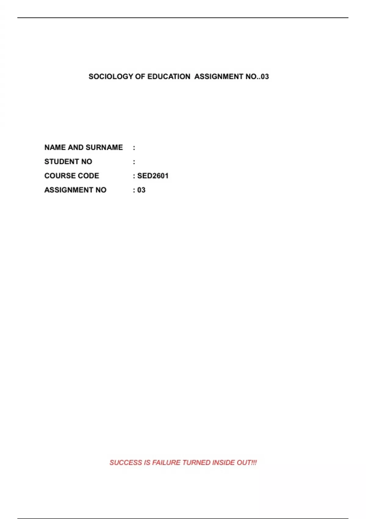 SOCIOLOGY OF EDUCATION ASSIGNMENT NO..03