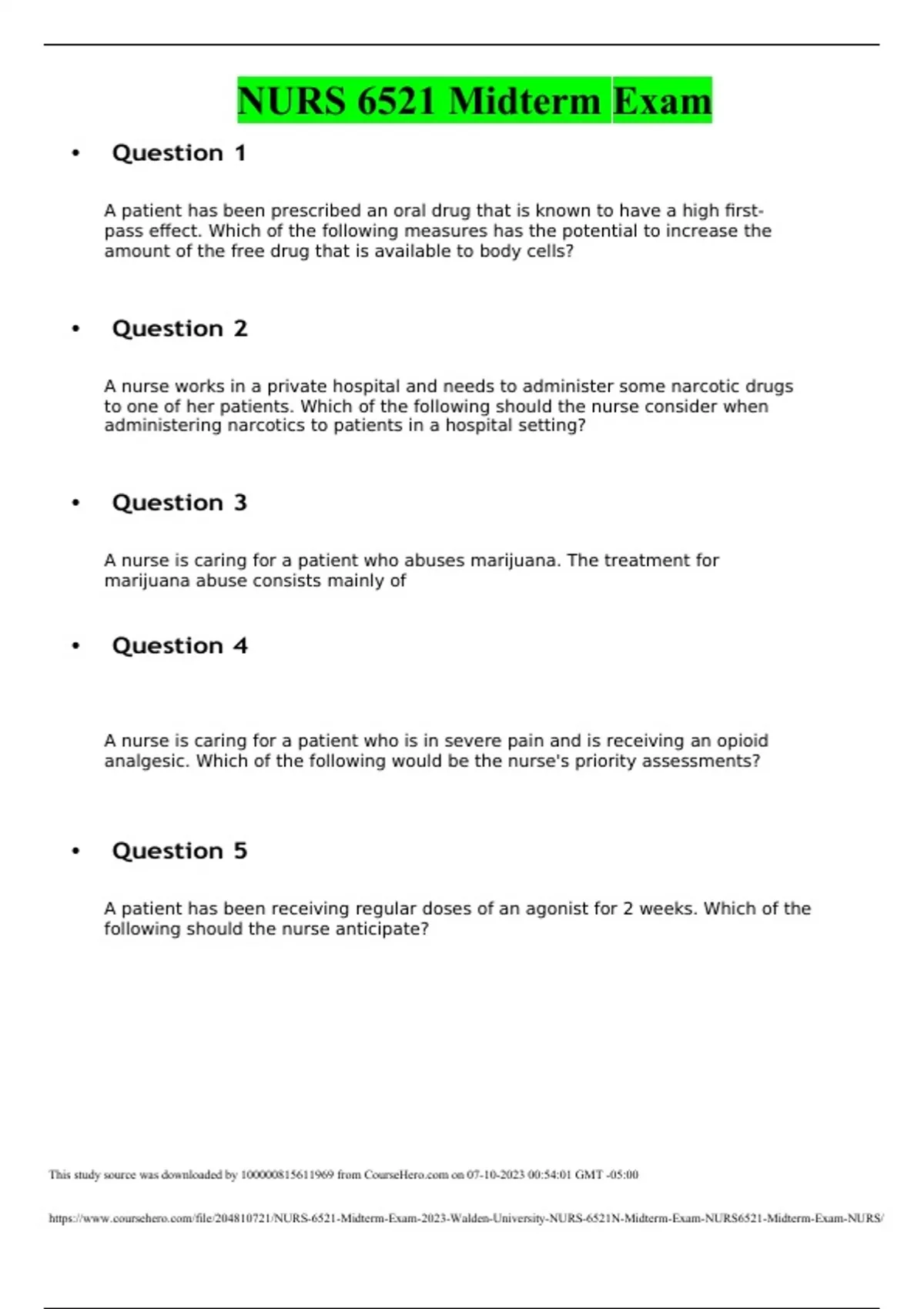 NURS 6521 Midterm Exam 2023, Walden University, NURS 6521N Midterm E