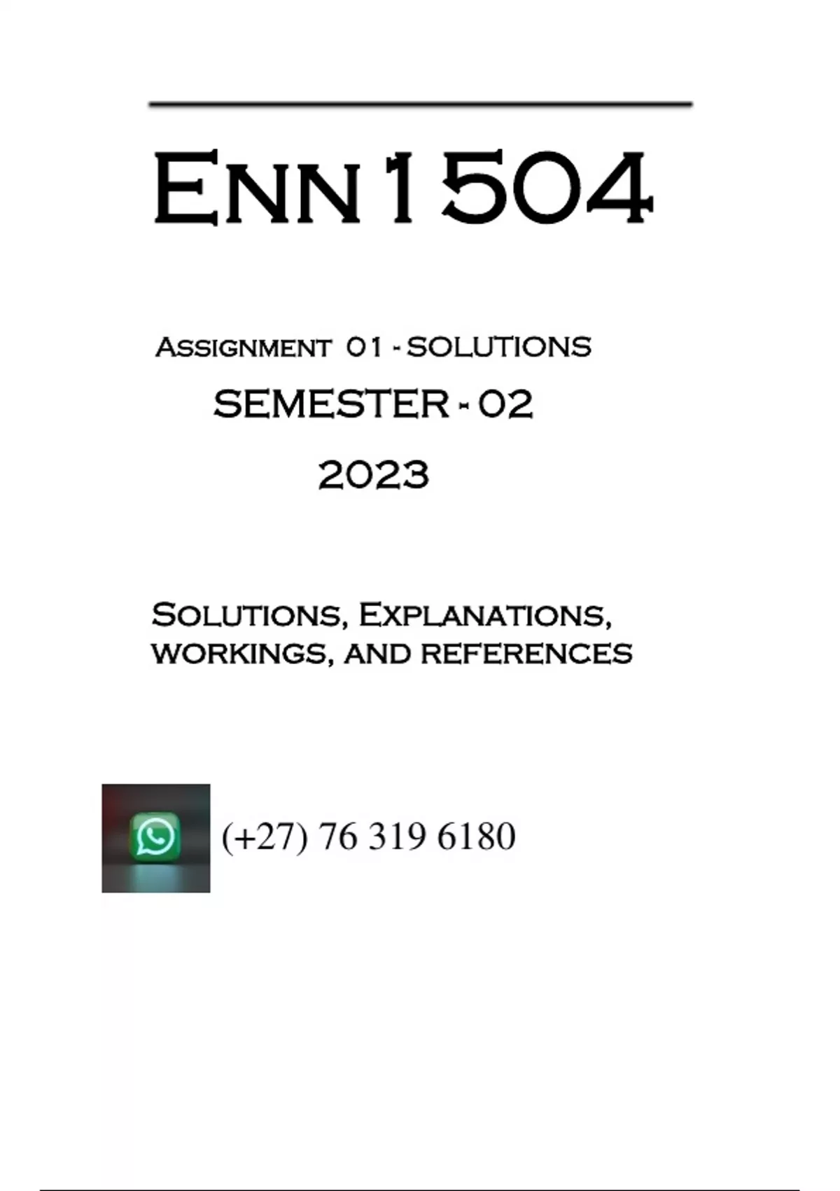 ENN1504 - ASSIGNMENT 1 SOLUTIONS (SEMESTER 02 - 2023)