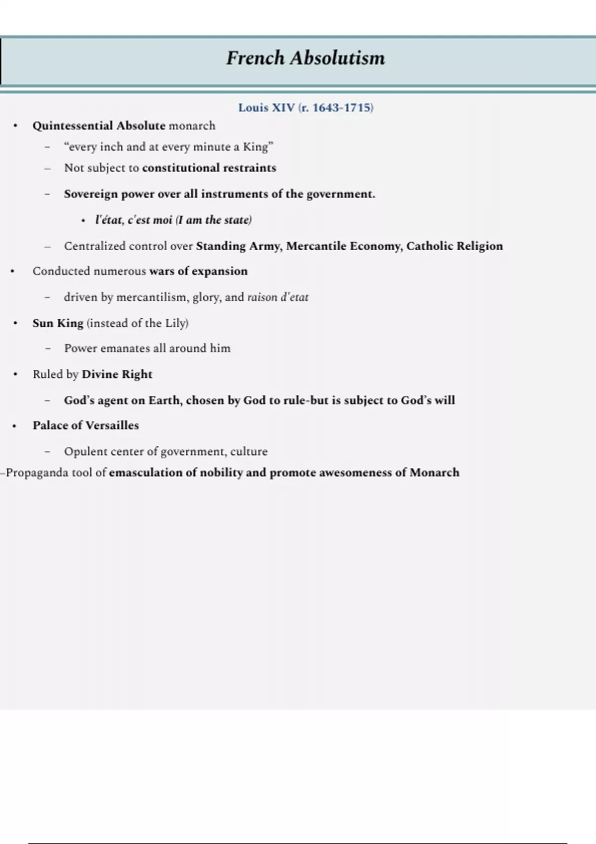 This study guide provides a clear and detailed summary covering the key concepts of French Absolutism.