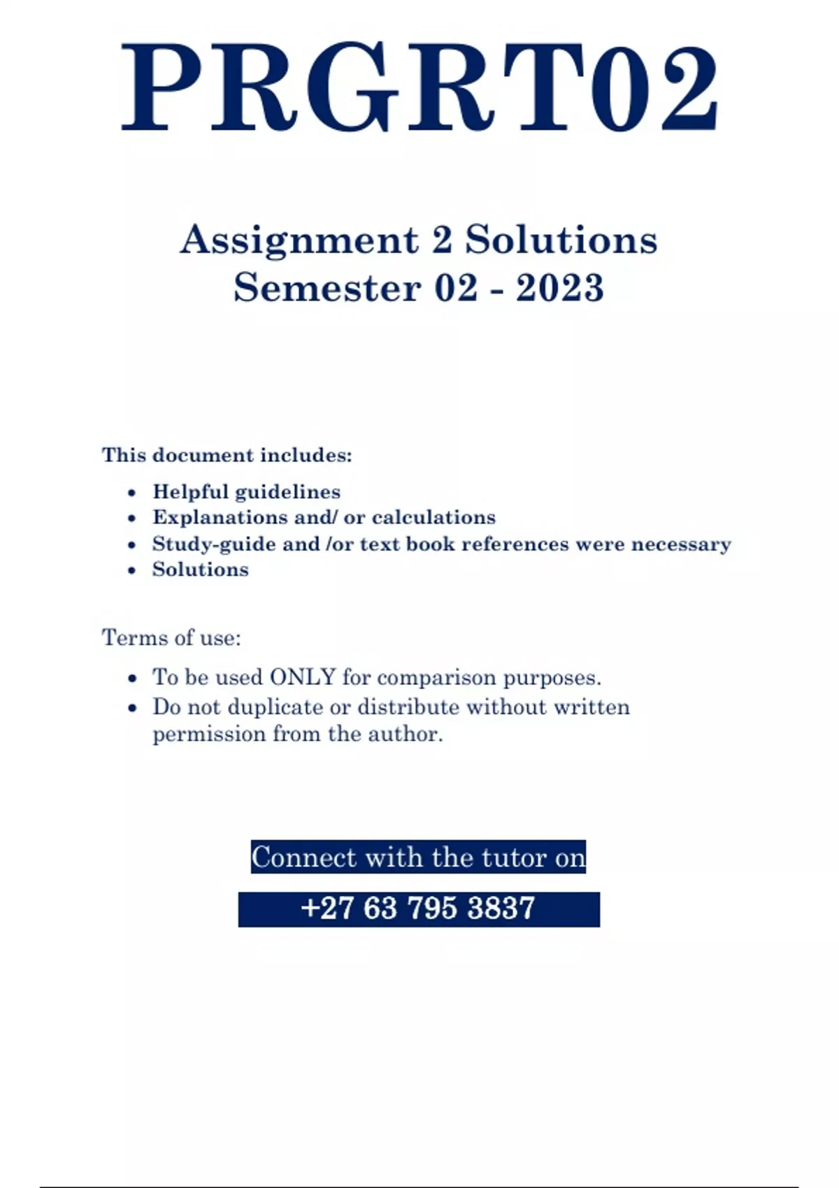 PRGRT02 - ASSIGNMENT 02 SOLUTIONS (SEMESTER 02 - 2023)