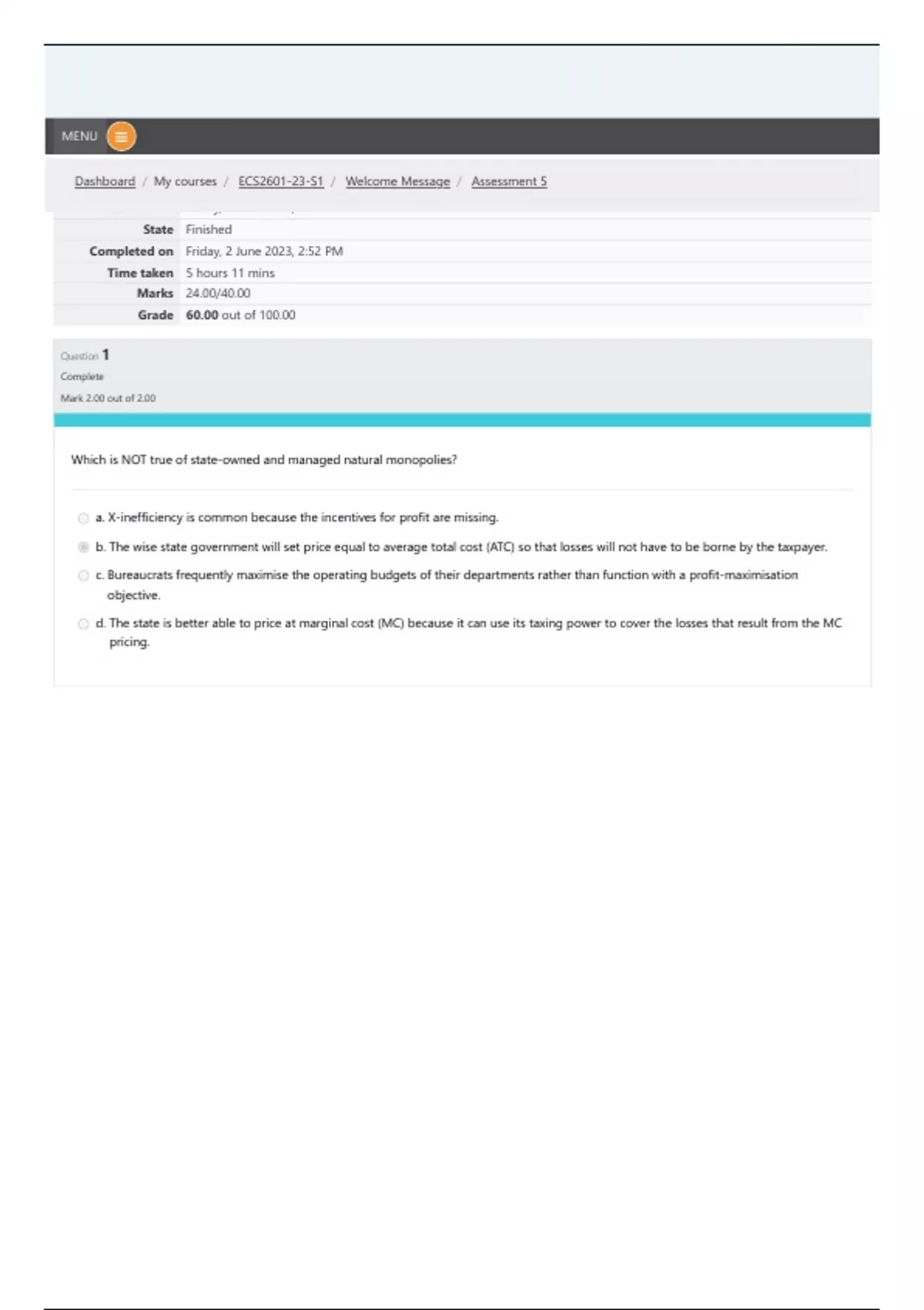 d. The state is better able to price at marginal cost (MC) because it can use its taxing power to cover the losses that result from the MC