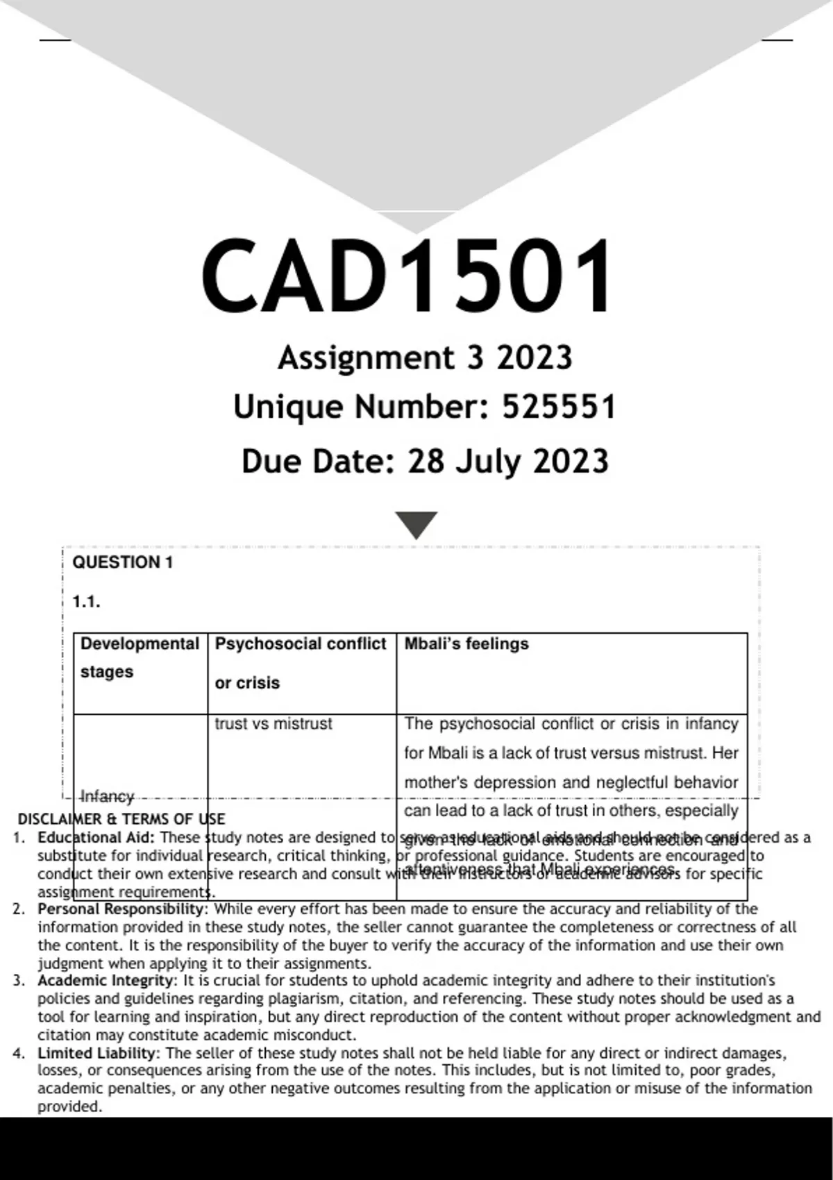 CAD1501 Assignment 3 (ANSWERS) 2023 (525551)- DISTINCTION GUARANTEED