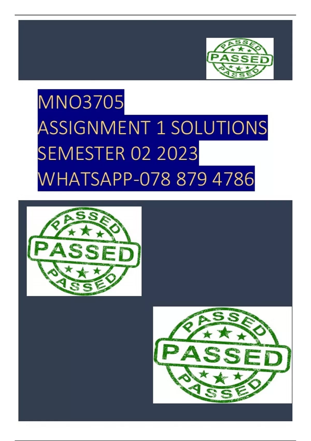 MNO3705 - ASSIGNMENT 1 SOLUTIONS (SEMESTER 02 - 2023)