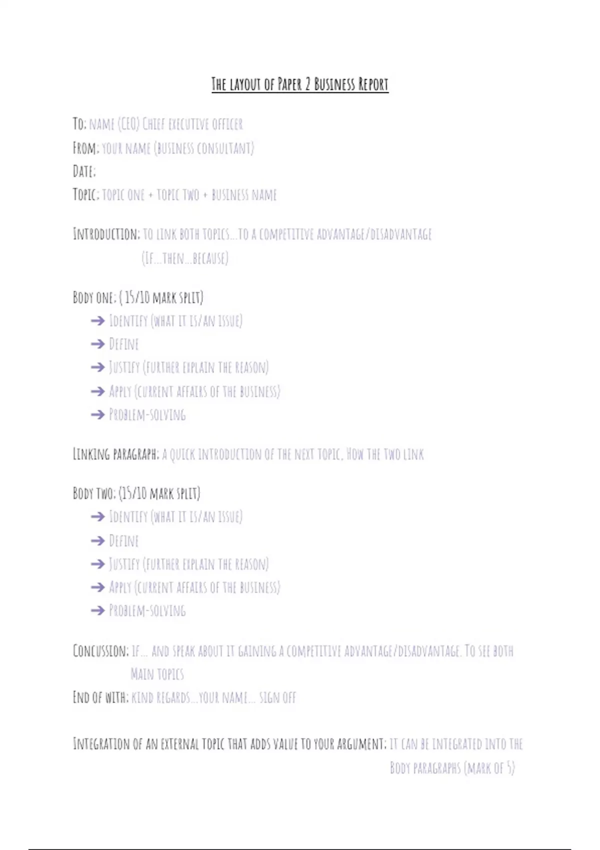 all grades on how to write a business report this is a paper two its an essay these notes walk you through the steps and requirements aswell as mark allocation
