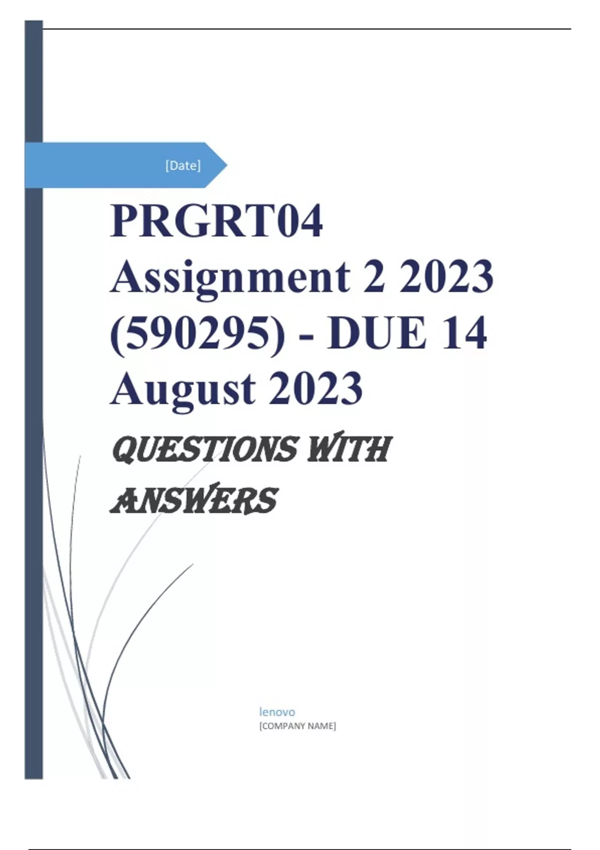 PRGRT04 Assignment 2 2023 (590295) - DUE 14 August 2023