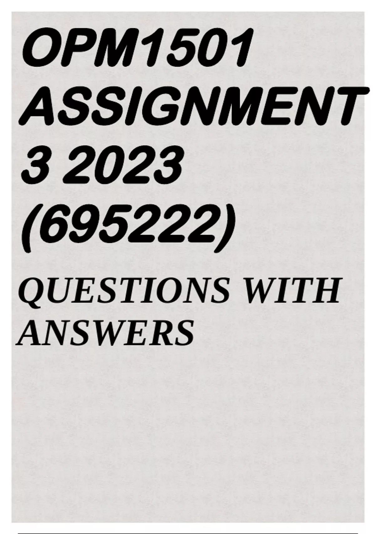 OPM1501 ASSIGNMENT 3 - 2023 (695222)