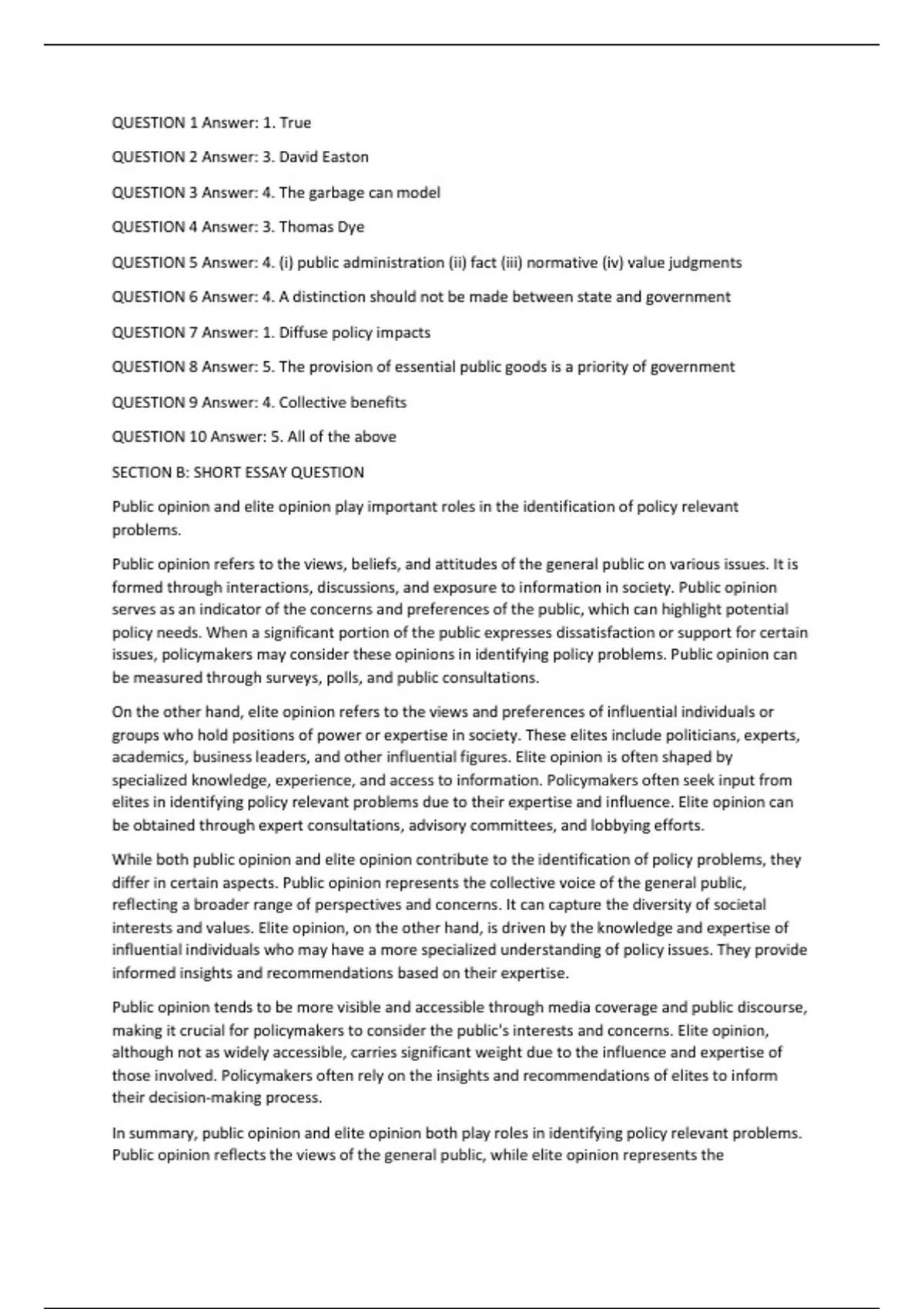 SECTION B: SHORT ESSAY QUESTION