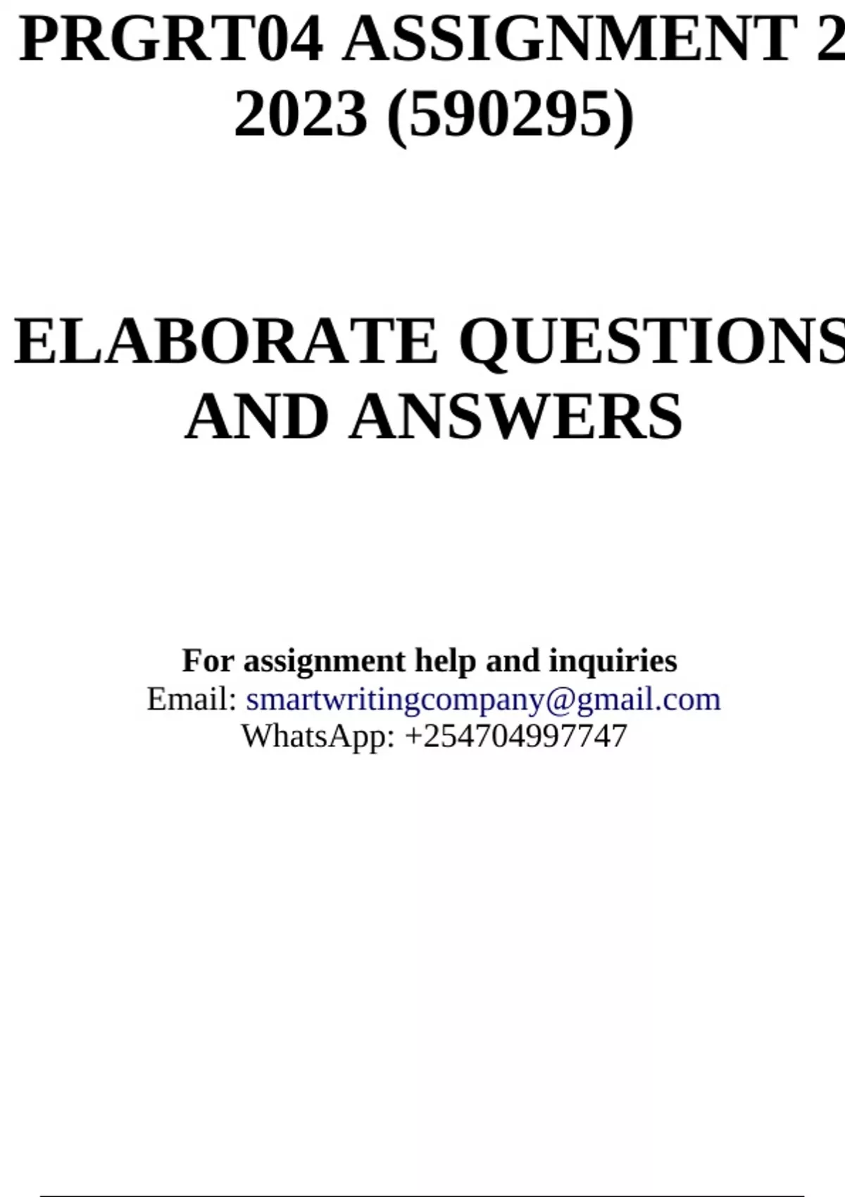 PRGRT04 Assignment 2 2023 (590295) - DUE 14/08/2023
