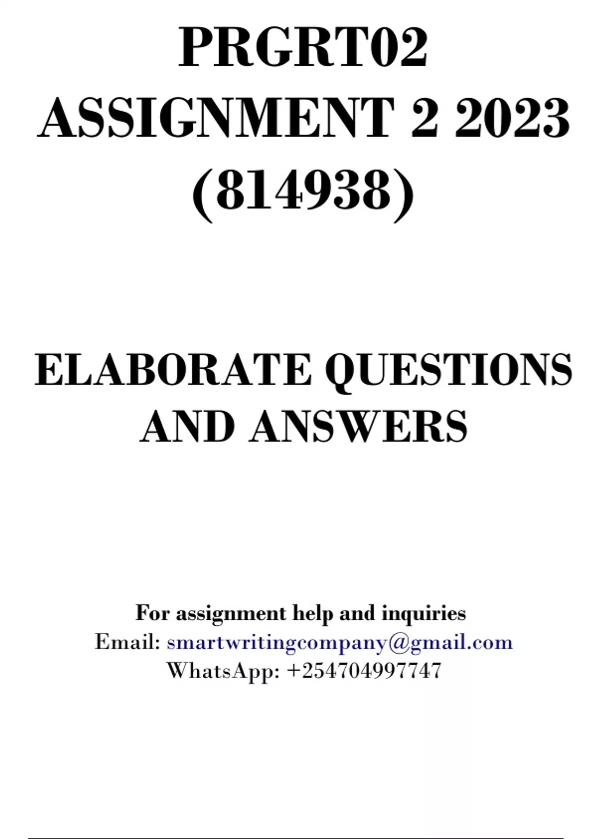 PRGRT02 Assignment 2 2023 (814938) - DUE 8/8/2023
